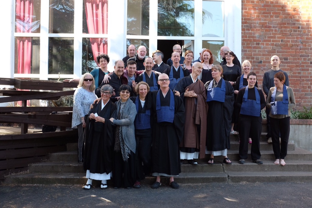 The sesshin group at Benburb on Sunday afternoon, featuring some brand new rakusus.