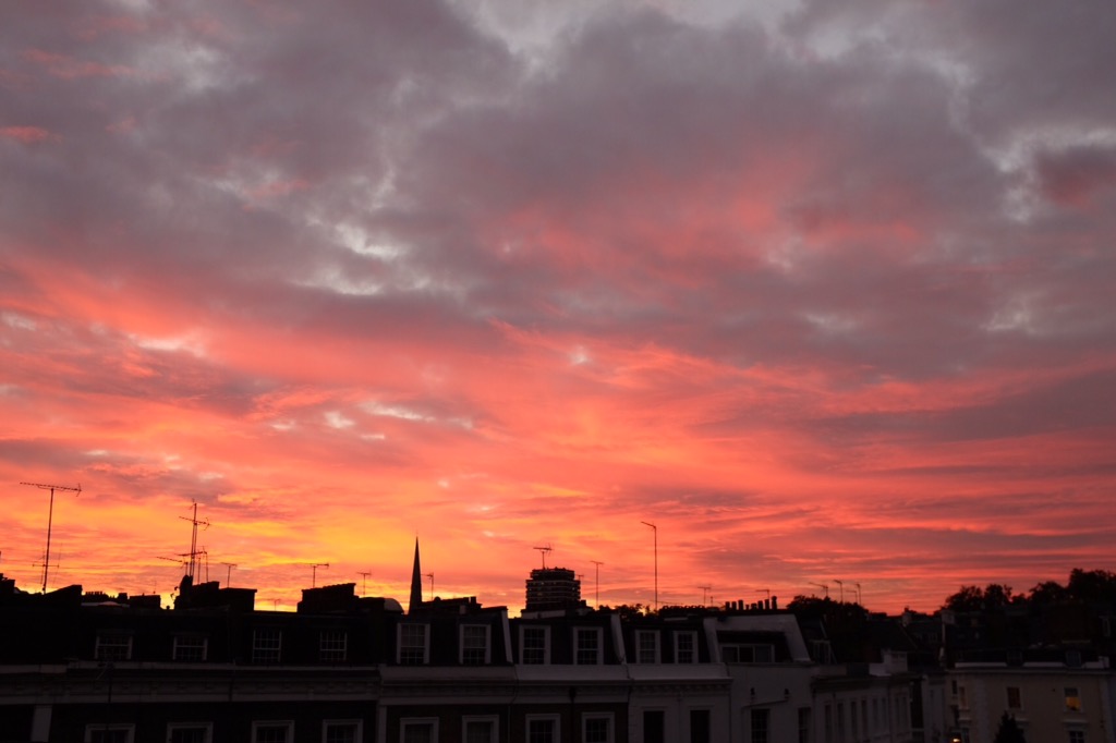 There were remarkable sunrises and sunsets in my two days in London earlier in the week.