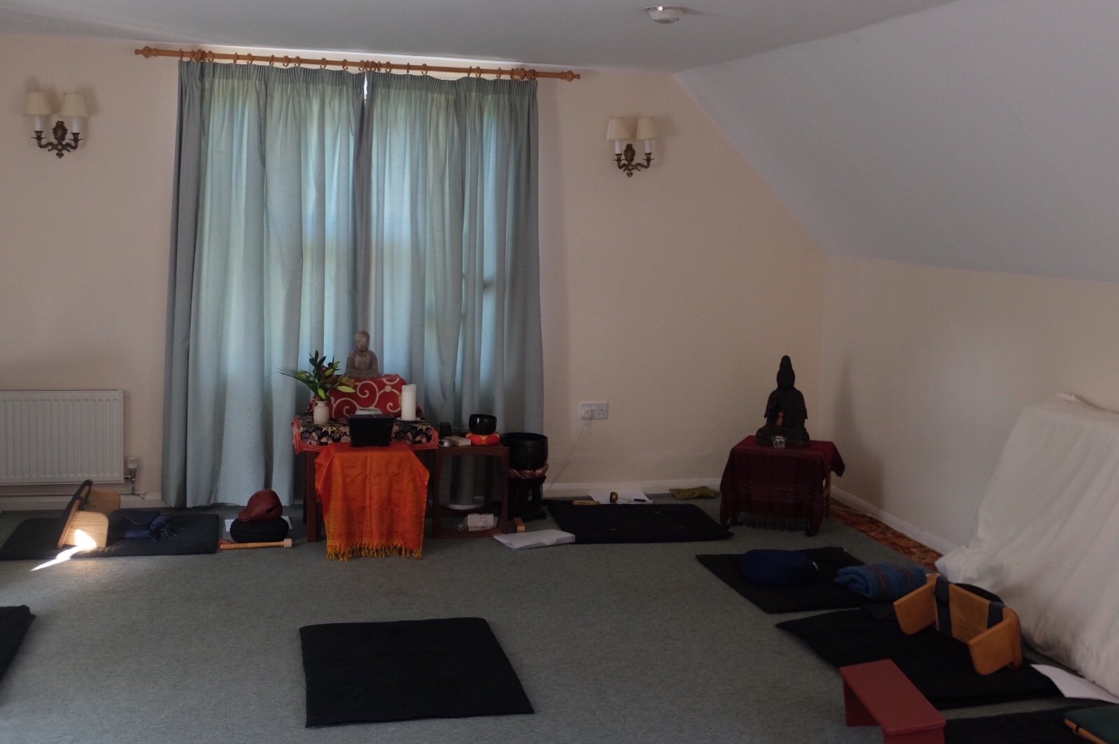 I was very encouraged to arrive at the venue after lunch just as both Carol and Rebecca were pulling into the driveway. After some hugs and catching up, we began to transform the Christian-themed place, a lovely building, solid and familiar with its red bricks and tall gables, setting up a sweet zendo for twelve in an upstairs lounge, and arranging the sitting room chairs downstairs and the dining room tables to accommodate everyone.