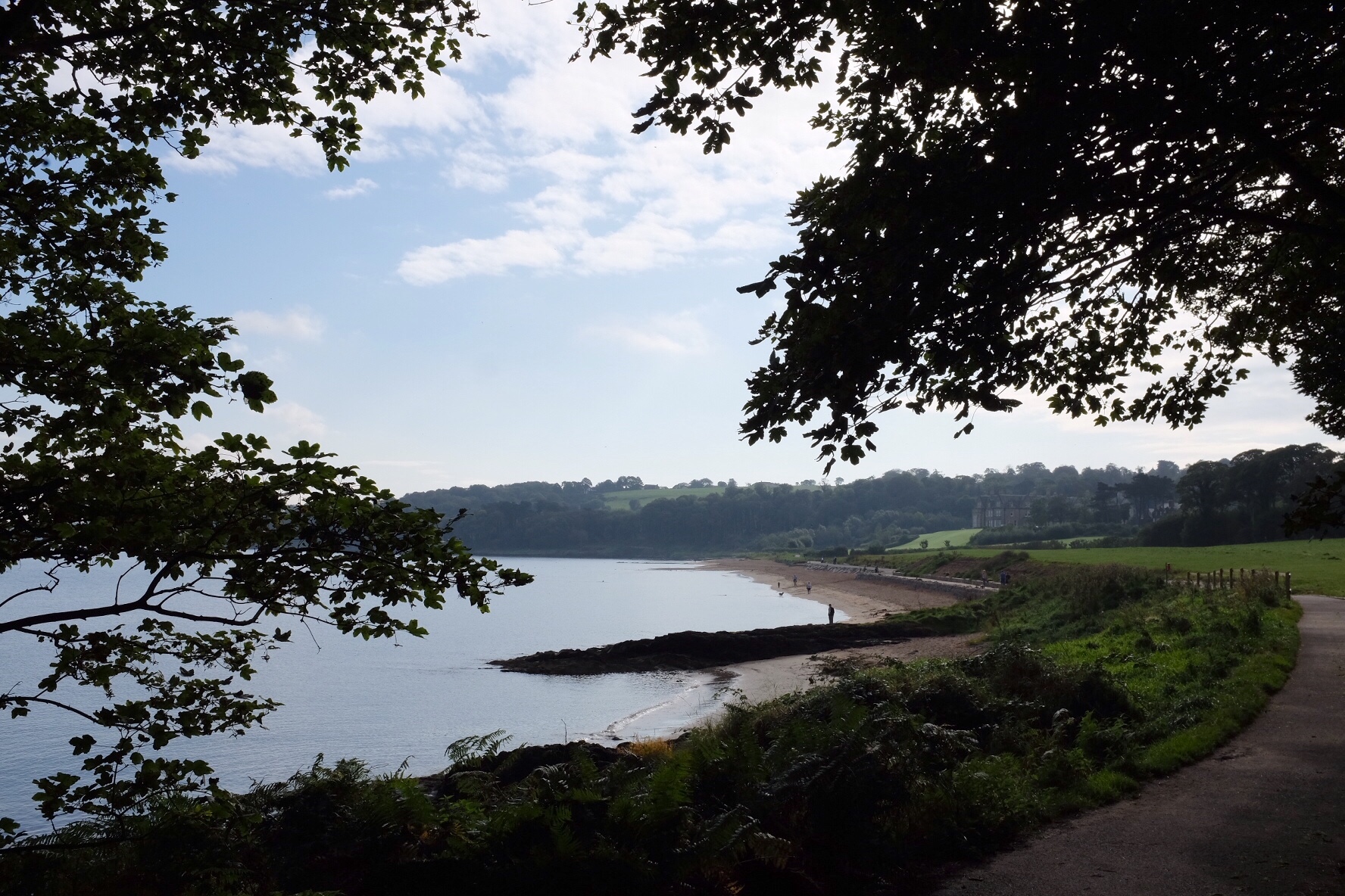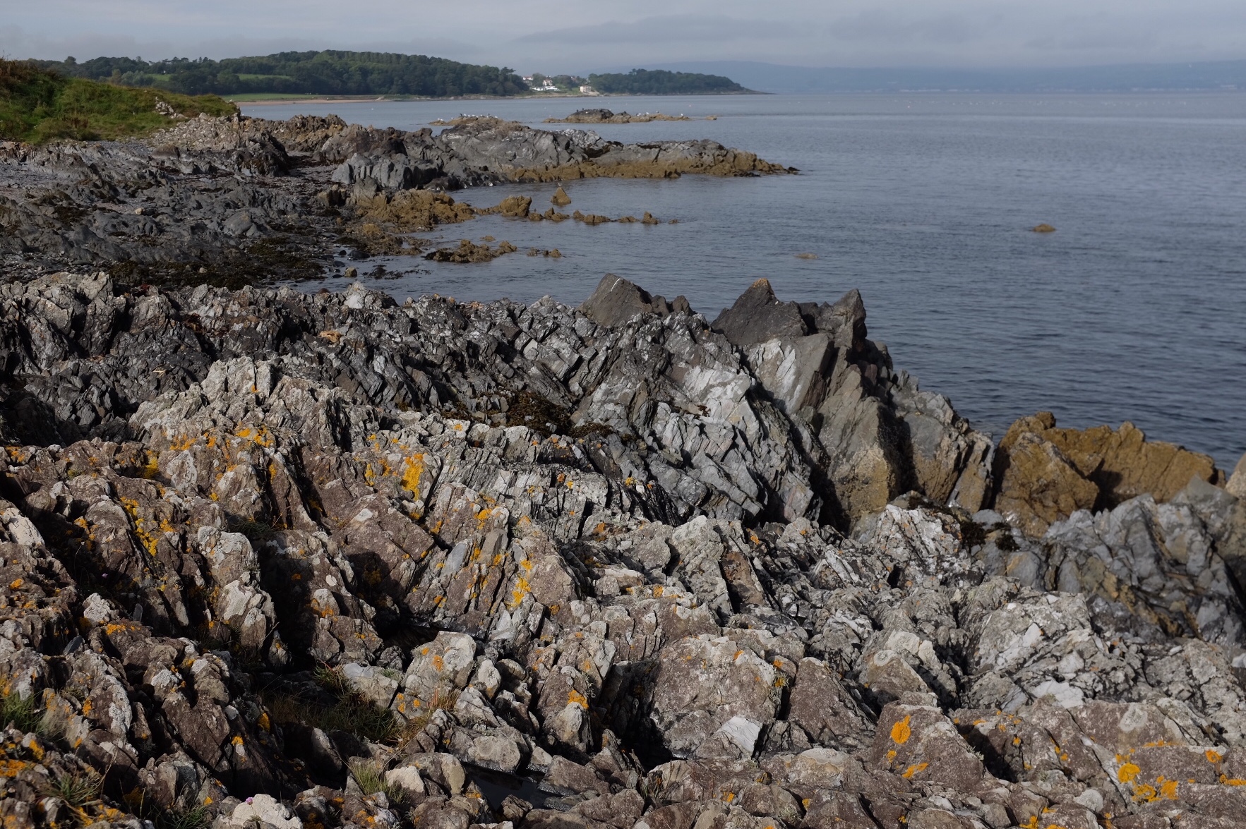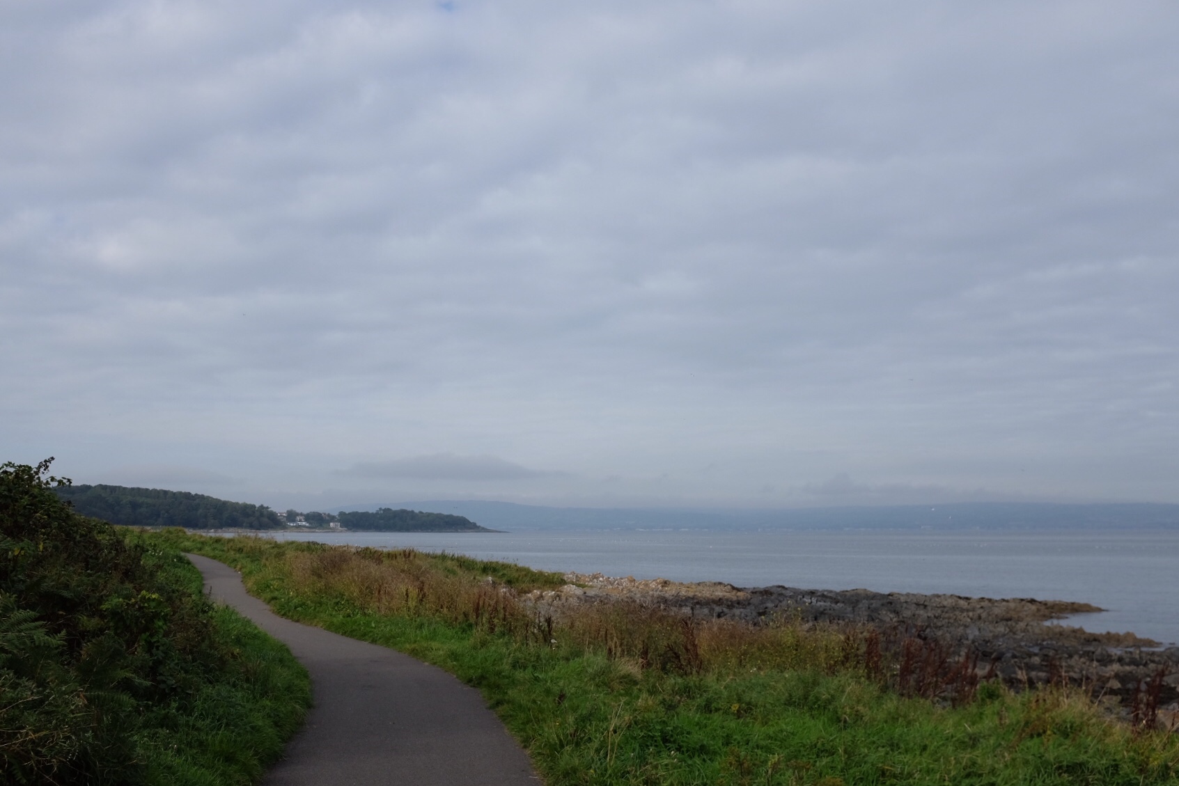 Much of my visit this year is revisiting places I have come to on each of my recent trips – albeit the order is often different – but this was the first time I had seen my sister’s new house, and I have also found new places to go in Belfast: Djinn takes herself off to swim in Bangor, a few miles up the coast, so on Tuesday I came with her and while she swam, I went running along the coast path as far as Grey Point. From there you could see back down the water to the city; turning around for the return to Bangor, distant hills may have been Scotland. It was such a sweet location that the following day I caught a slow suburban train out to Helen’s Bay and walked the whole stretch again in one direction with my camera, enjoying warm air and occasional sunshine.