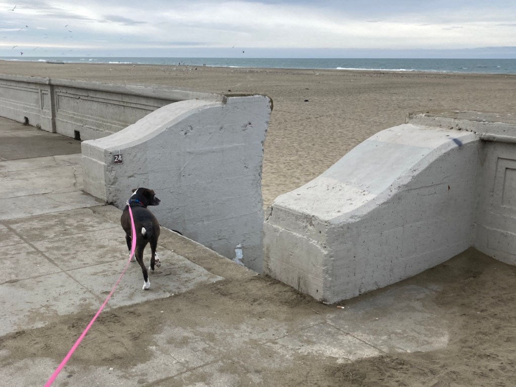 I wonder how it must have seemed for Collin, who has spent all his life in the midwest: one day he gets into a noisy, bumpy container, and later that day he ends up in a new space. His first act on coming in the door was to leap on the bed, where he felt safe. It took him a few hours to trust the long hallway, and he still has a tendency to want to go up a different staircase and stop at a different floor to the one we live on. He doesn’t know he is in a different state; while he had never seen the ocean before, he lived close to a large lake, and perhaps experienced Ocean Beach in the same way as he did that – though I suspect the smells were different at the ocean. Perhaps everything else in California smells relatively familiar. He is mapping out his territory around the apartment, and has his own bed, our bed, and the couch to spend his days and nights on, sufficient food and abundant love. I think he likes it.