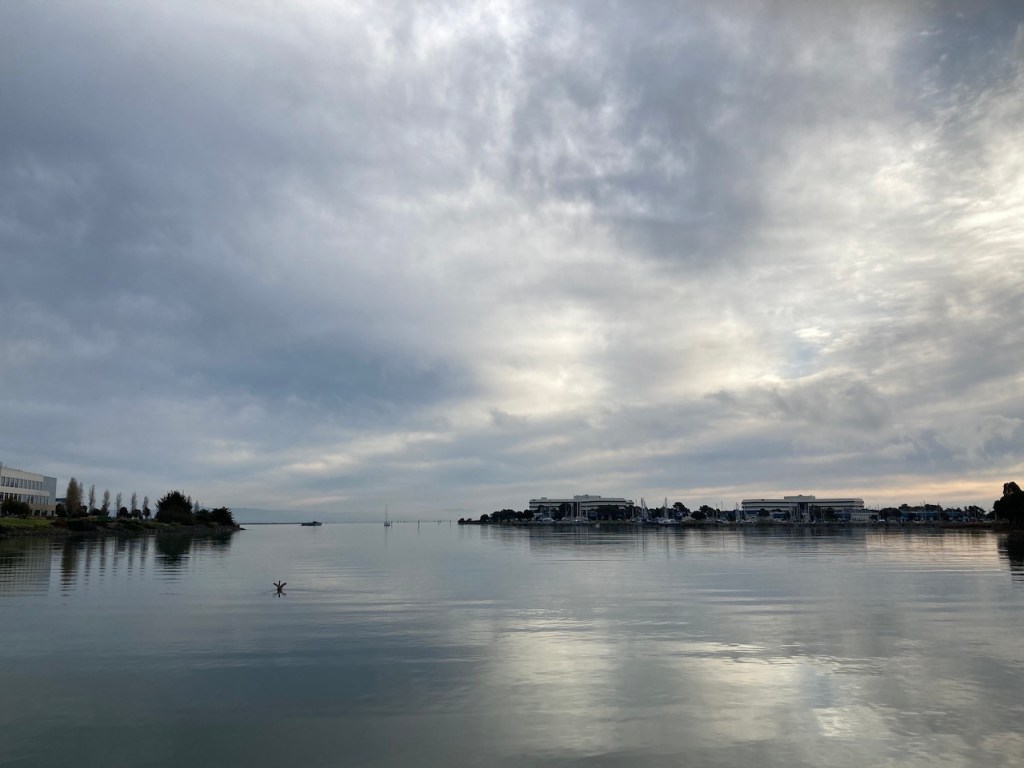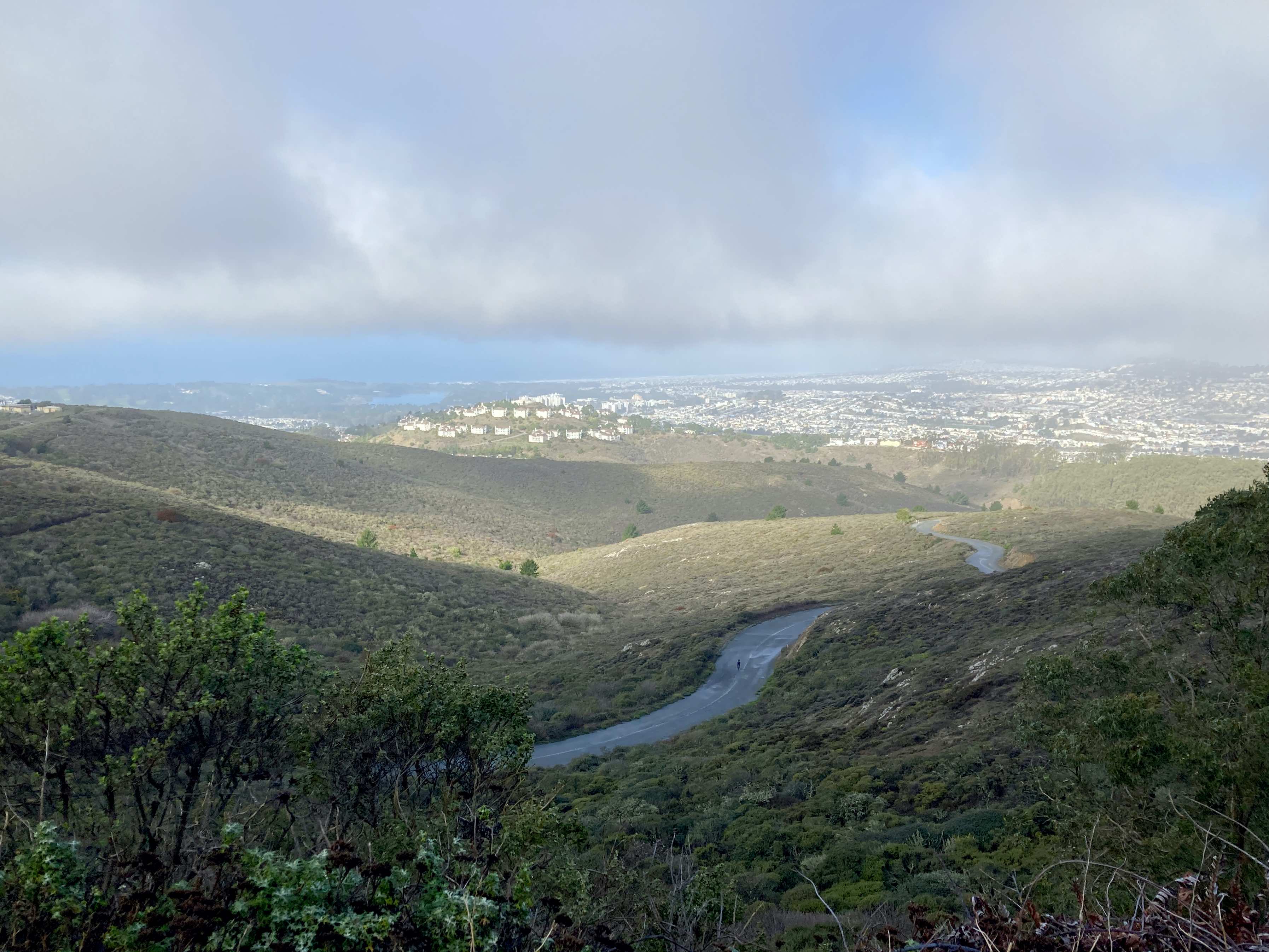 Looking down San Bruno mountain towards Lake Merced and the ocean
