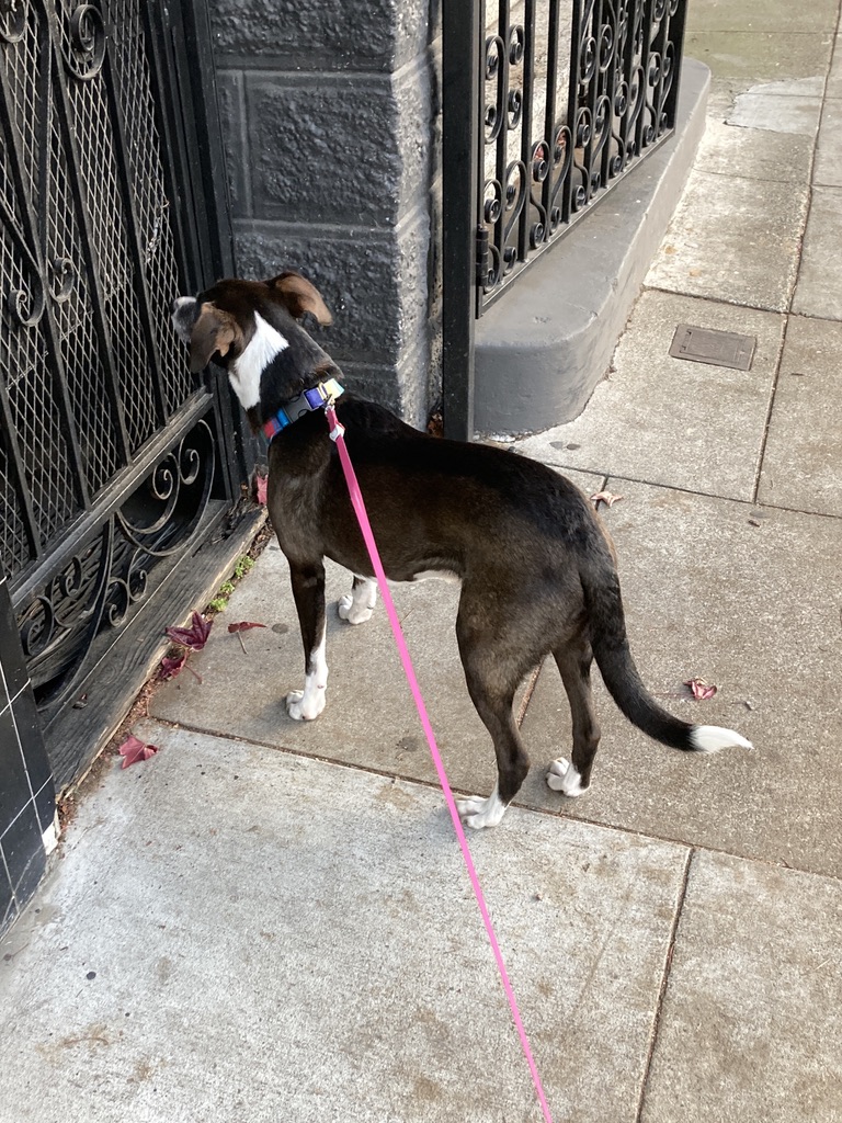 In the middle of all these aspects of my life, one of my new routines is taking Collin the dog out for a walk several times a day, with my partner, or by myself. He is elderly, so we don’t usually cover more than half-a-dozen blocks. There are several variations of route around where we live, obviously, and I enjoy seeing the various houses, the distant city landmarks, the sky and the clouds, the different sidewalk plantings, which offer blossoms even in the middle of winter. And I enjoy watching Colling navigate in his way; he seems used to his new city life, and like any dog, relishes following his nose for traces of the other dogs we see and meet around the neighbourhood. I am not running so many errands on my bike these days, so the walk often serves as a valuable screen break during a day of working from home, gentle exercise, and the opportunity to pay close attention to my surroundings each time, however familiar and mundane they may appear to be.