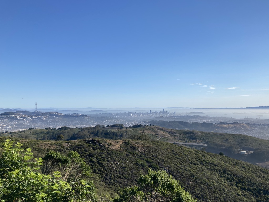 Like a switch being flipped, the fog burned off on Thursday, and the skies cleared. Friday was warm and windless. Since it was the only morning this week I had free to ride, I was happy to get up San Bruno Mountain. On the way up, I discovered, as I used to on my pilgrimages to Mount Diablo, that I crossed a temperature layer. It was much warmer closer to the summit, just as, the last time I was there, the fog got denser and the wind stronger. I am not sure exactly what altitude it was, but it was abundantly evident on the way down again as well, as I felt the air get several degrees cooler.
