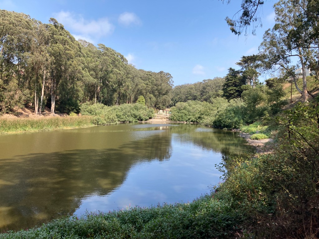 Camille, who I have known through Zen Center since my earliest days there, had a lovely piece about Roaming Zen published in the Bold Italic (a publication I have known about for about a decade). There was a spike in the readership on here afterwards – welcome if you are new and sticking around. It didn’t, though, boost the attendance for Sunday’s roam, but we had a nice small group, and we got very lucky with a warm sunny afternoon. Pine Lake was a wonderfully serene spot to sit and watch the herons, the cormorants, and the many dogs being walked to and fro. I could have stayed for much longer, but felt responsible to get people back to the starting point on time.