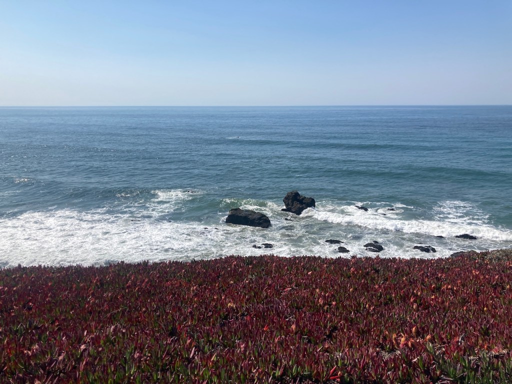 The following day I rented a car and drove up the coast, from Point Reyes to Sea Ranch – the first few miles were familiar from many bike rides, and then I was on roads I have only driven once, a few years ago now, on a short holiday from Zen Center. It was warm and bright, and Sea Ranch itself, the setting for an end-of-afternoon wedding I was officiating, looked amazing. I got to linger by the ocean a few times on the way up, and then hang out with a family of deer and a hummingbird before the couple showed up.