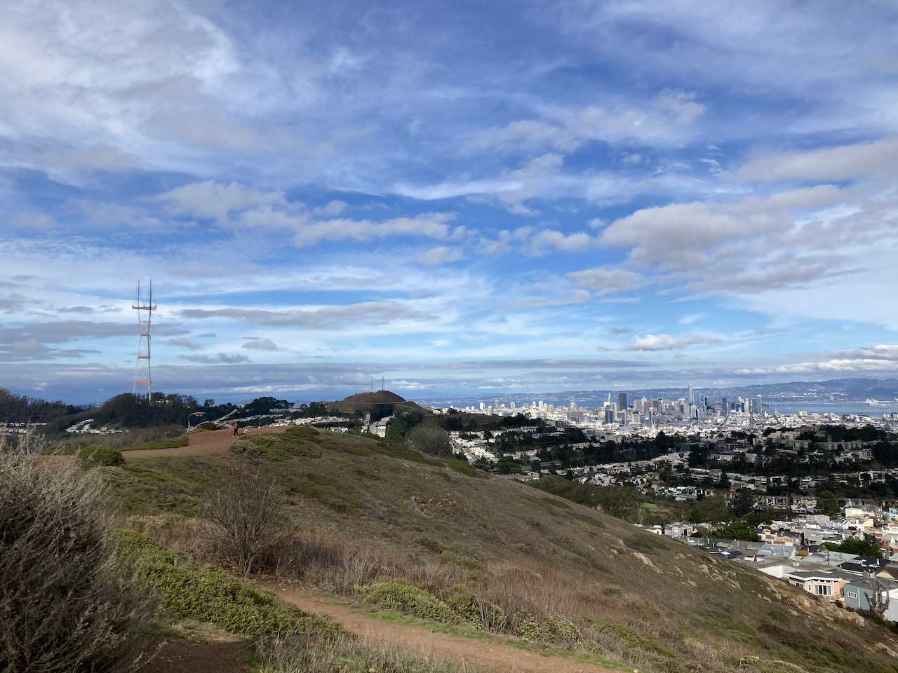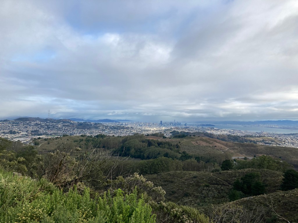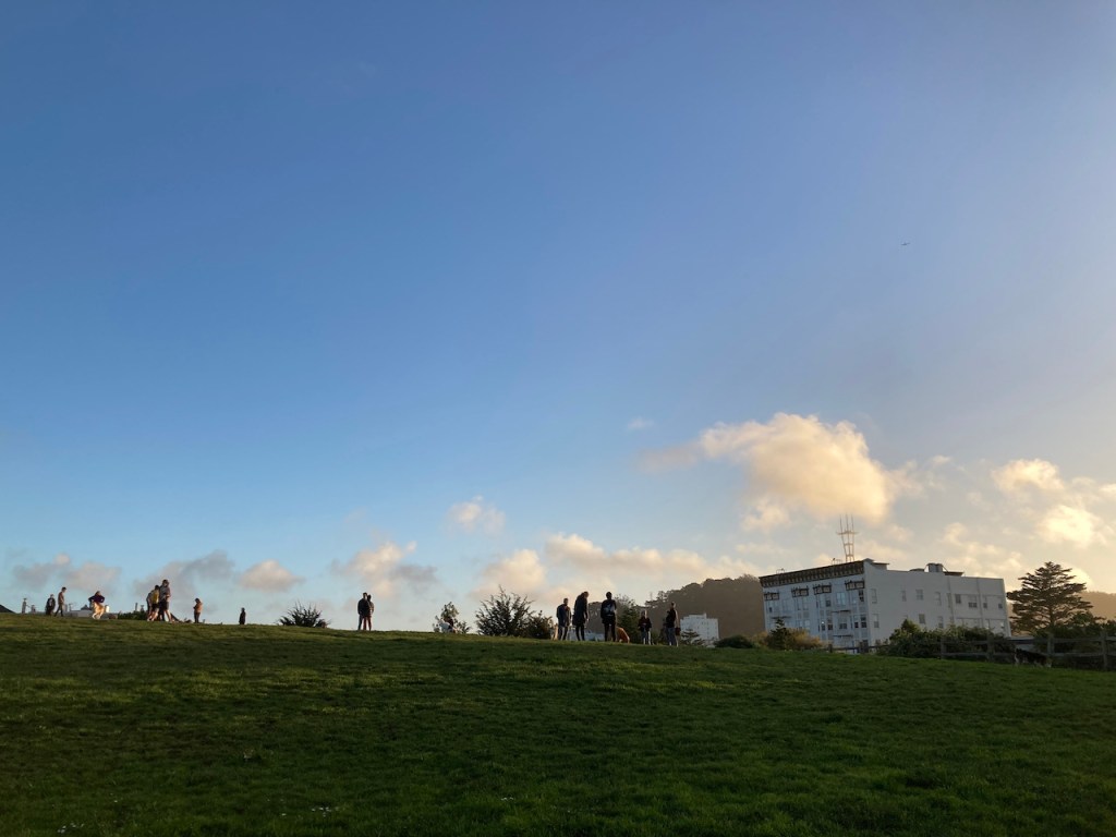 This past Sunday was a much better day for a roam, even if it was not as hot as the last time we roamed. I had taken a quick ride to the top of San Bruno Mountain in the morning, and it was nice to be looking back over to it in the afternoon. From the top of Mount Davidson it was clear enough to see to Point Reyes in the north, and the towers of San Jose to the south (which I don’t remember seeing from the city before). As we returned through the houses, there were some fun Hallowe’en activities and costumes starting to happen.