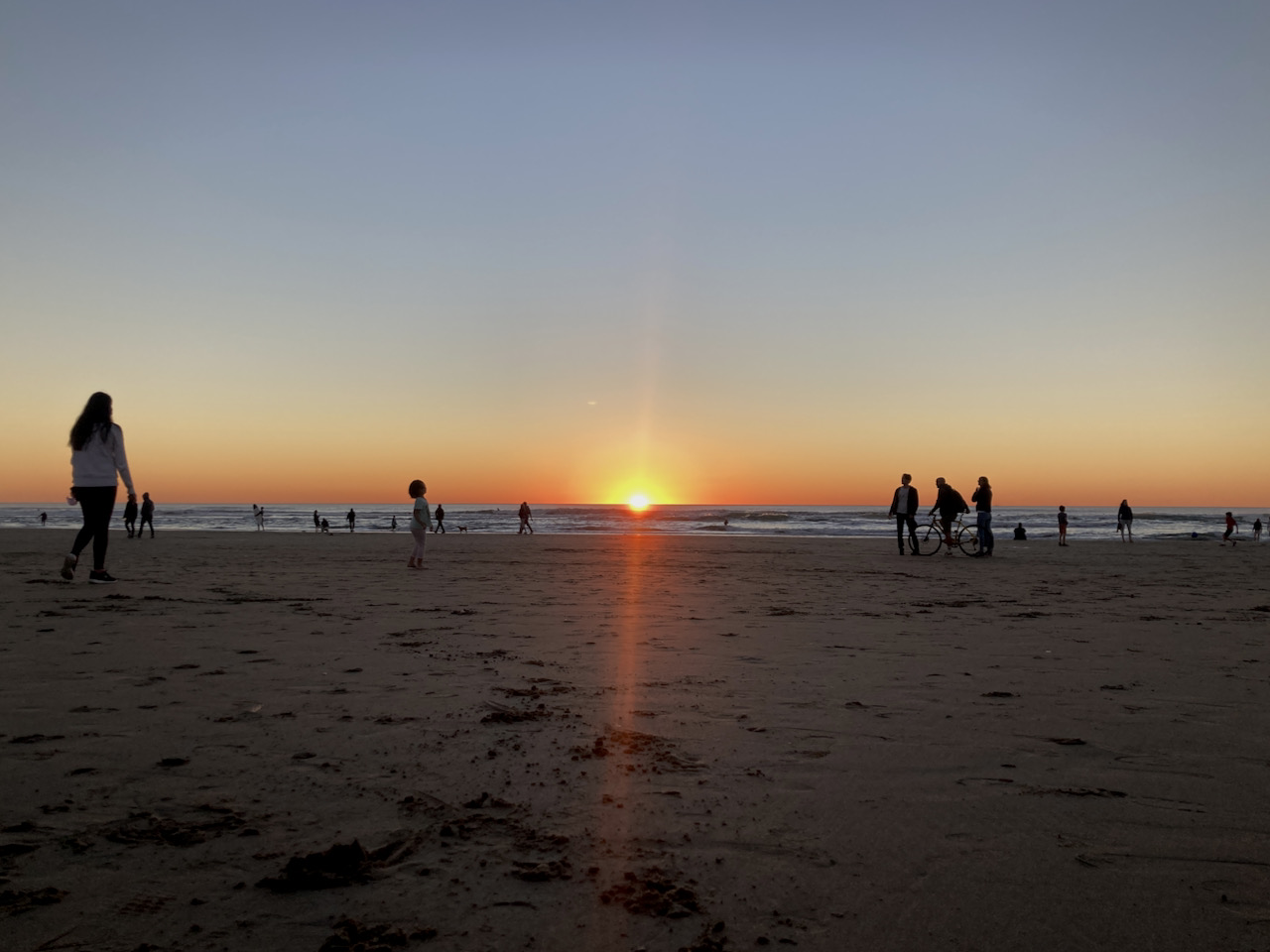 As my schedule has felt a little lighter, I have started trying to brush up on my in-person social skills again – which is definitely easier to do when it is warm enough to sit with friends in the park, or as happened on Sunday evening, on the beach. I had already ridden along Great Highway in the morning, right before the sun came up, and the moon was descending towards the horizon in the ocean. The whole day was clear, and the sunset gorgeous. It is so easy to feel thankful to be able to spend time in such a way, in a place I can ride my bike to easily – and I know we could use a lot more rain soon!
