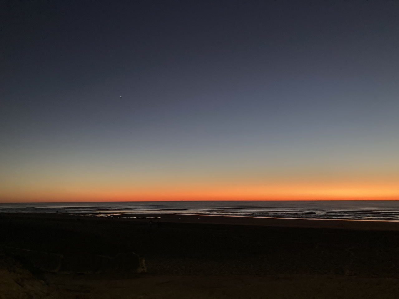 After the sun went down, we could start to see stars and planets: for the first time in a while, I took out my star chart app – the brightest one was Venus, then we spotted Jupiter close by; a few moments later, Saturn was visible, in a straight line between the other two, and all three lining up to point down to where the sun had just set. It must mean something…