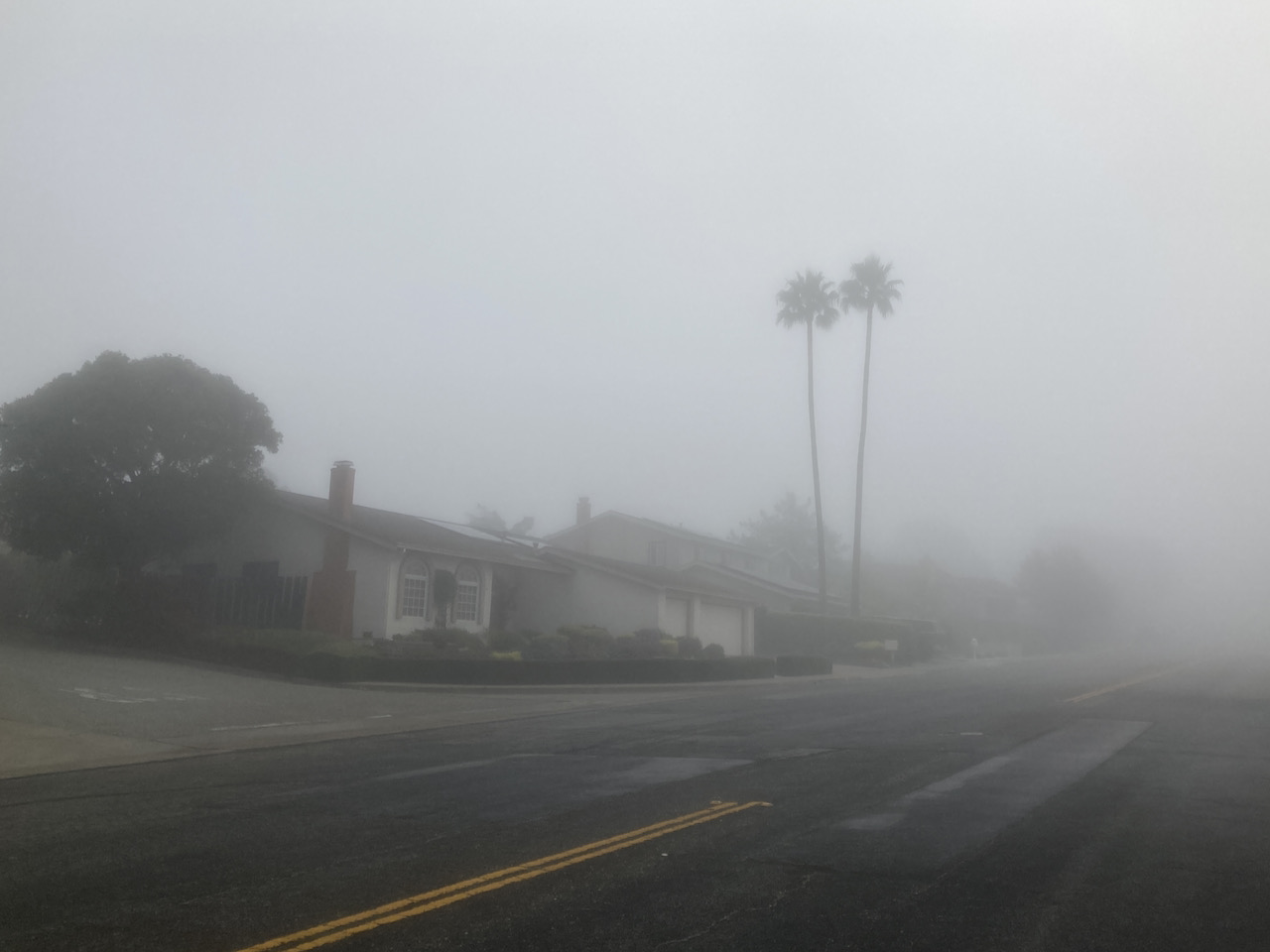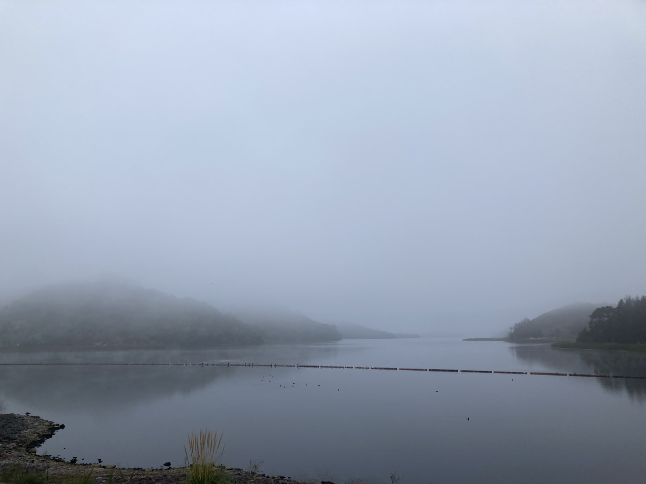 After several weeks of bountiful warmth, the weather turned on Friday, and now resembles a more seasonally appropriate chill (which in the Bay Area means that it has dropped below 50 degrees). I had most of my winter layers on for my Sunday ride, and where I wanted to take pictures of the views from the ridges, there was only fog.