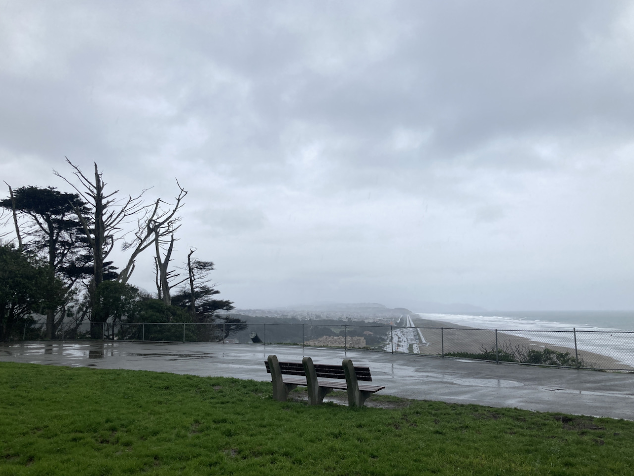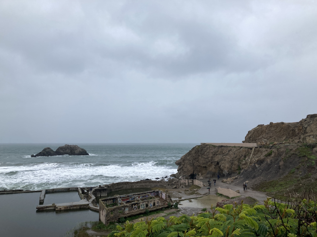 The forecast for the roam last Saturday changed each time I looked at it; in the end it started raining after we set out along the beach, and didn’t really let up. The wind blew in from the ocean, the surf roared, and it wasn’t an afternoon to sit and linger in the beautiful locations at the Sutro Baths and Sutro Heights, but I certainly benefited from a dose of fresh air, and I think the group did as well.