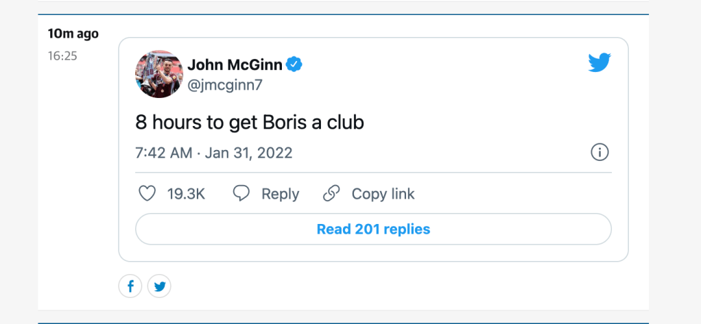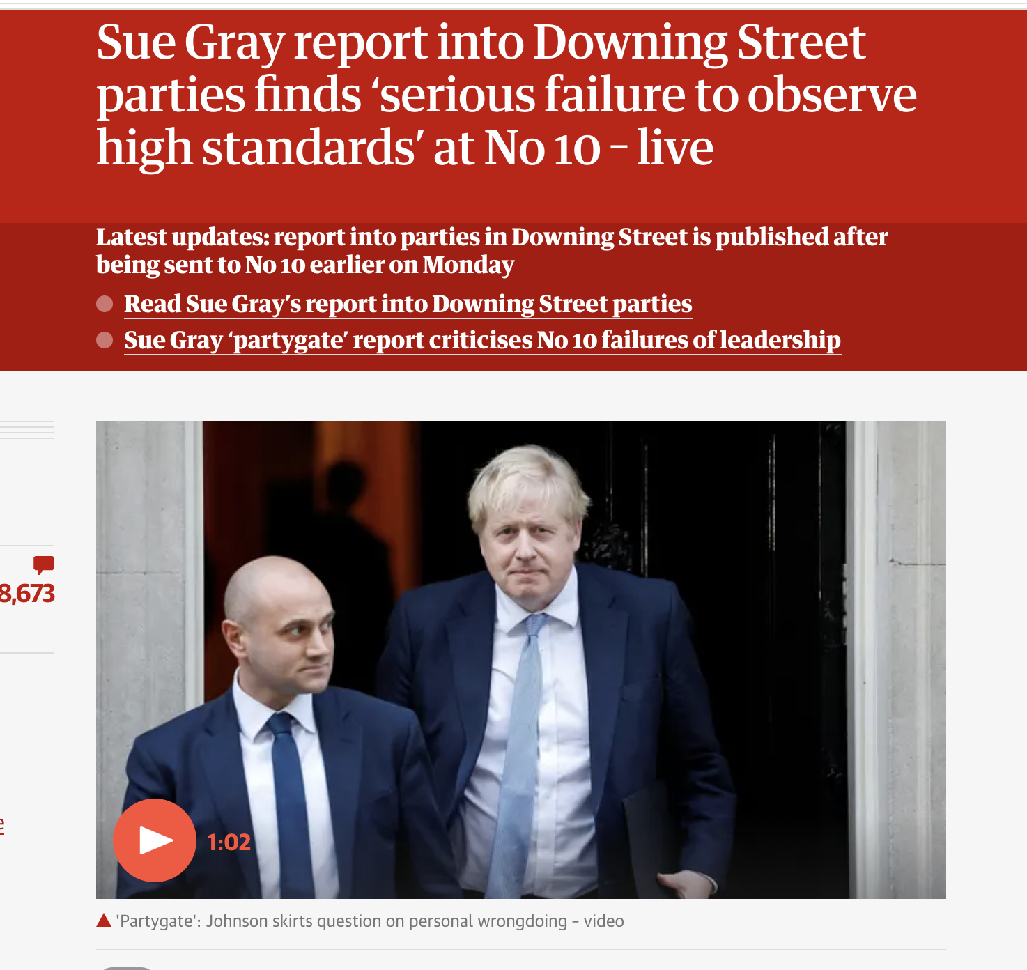 On a slow start to Monday morning, I was also following two live updates – in even less overlapping fields – from the UK: first the final day of the football transfer window, which under current media conditions is a breathless succession of snippets of news and gossip. Alongside this was the publication of a report which detailed some of the many parties that happened at the Prime Minister’s residence during lockdown, and the parliamentary session which followed. More details are being withheld while the police investigate them.