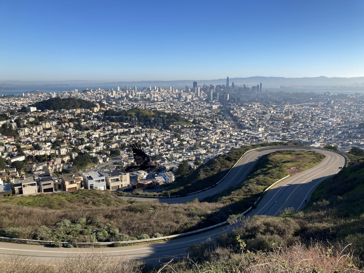 On Friday I took an early ride over to Twin Peaks, then went downtown to remind myself of the route for what was planned to be the next roam, and in the afternoon walked up to the park with a teacher friend having a starting-to-be-regular catch up chat.