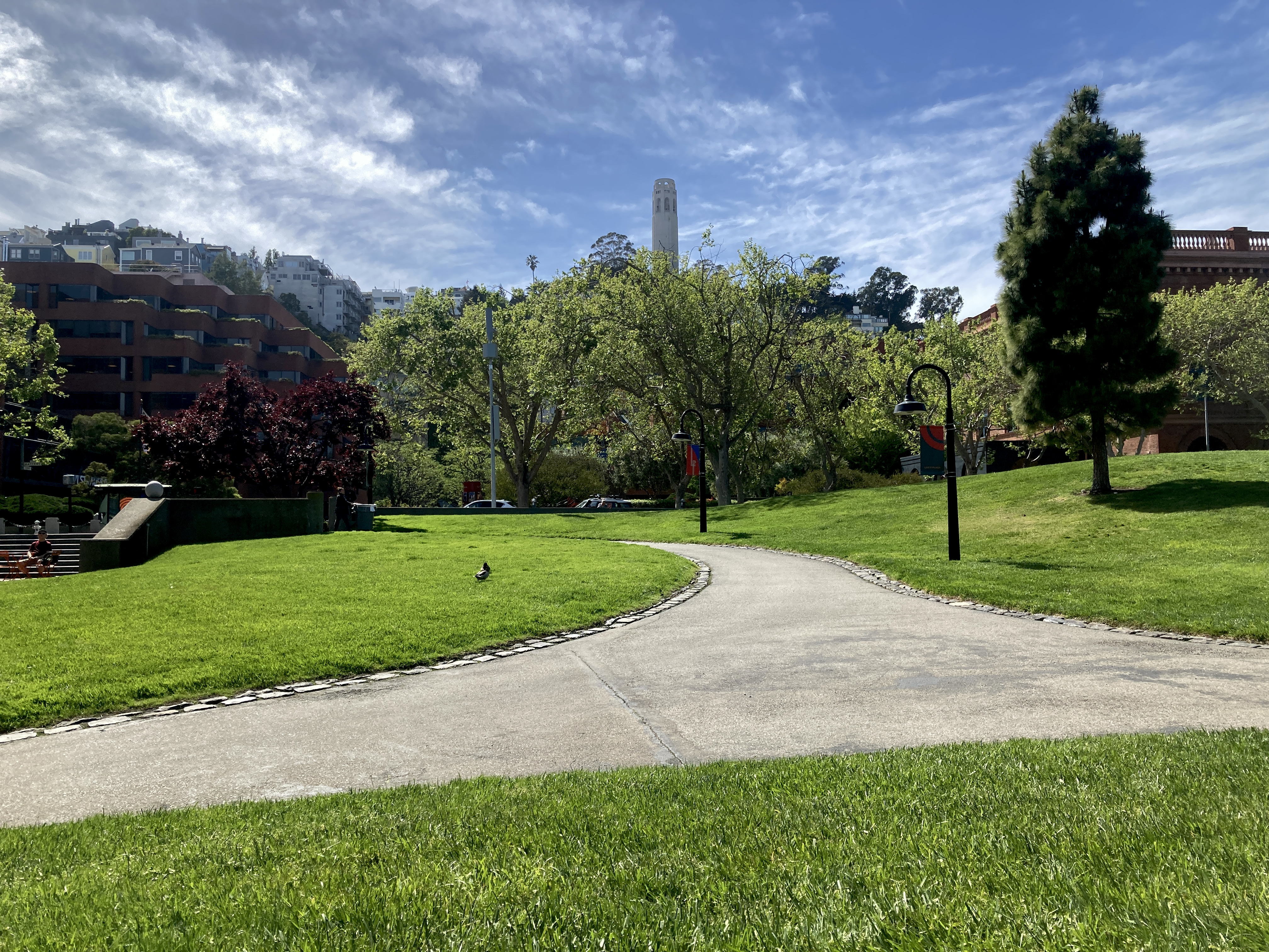 It got even hotter on Thursday, up to 82, which made my commute a little sweaty, but I am really not complaining. Luckily it was a little fresher for the supplementary roam on Friday afternoon, where we went against the current of GIants fans walking down the Embarcadero and instead traced the outlines of Yerba Buena Cove. This was one of my whimsical roam ideas, which allowed us to take in a lot of urban architecture from the last century and more, and to appreciate the little slopes that revealed, even after all this time, where the water had stopped before all those blocks got filled in.