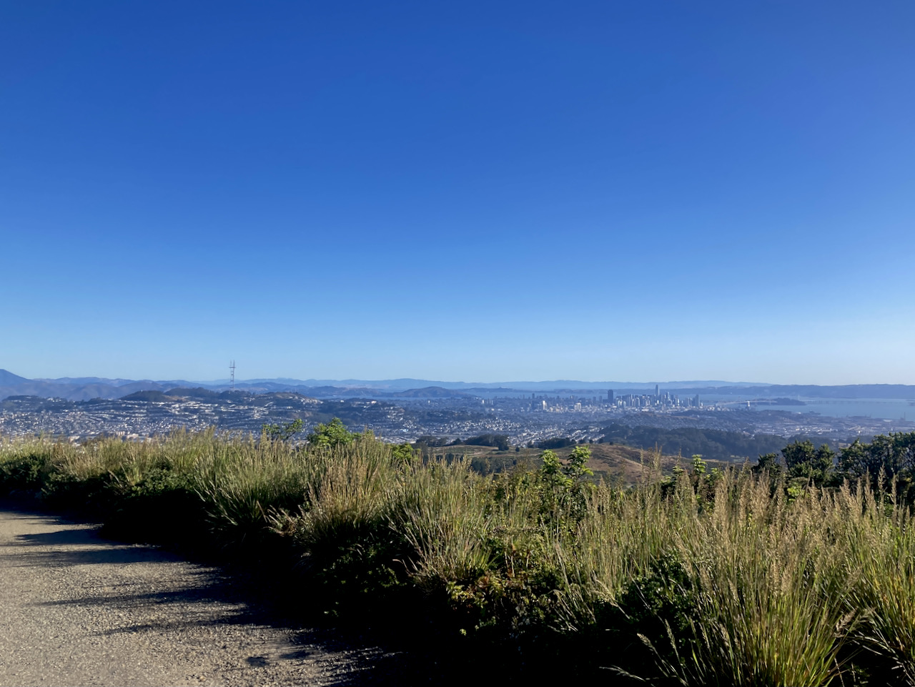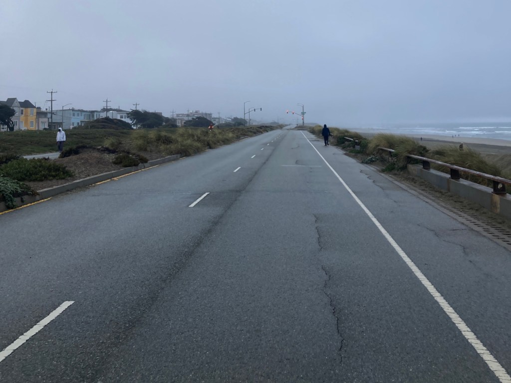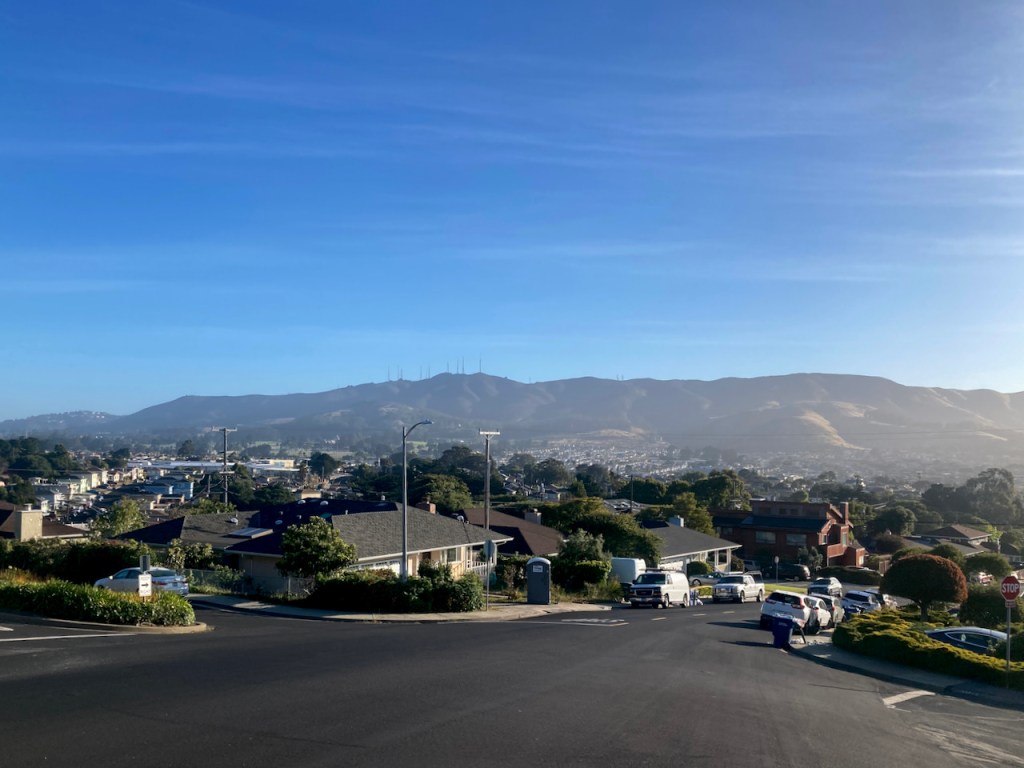 I was quite surprised that Sunday dawned totally clear, and I enjoyed my ride up San Bruno mountain, before I dragged more than a dozen roamers up the south side of Mount Sutro and Twin Peaks on a pleasant afternoon. Monday was also clear, and I had a sunnier time down along Great Highway before climbing over and round to the bay side.