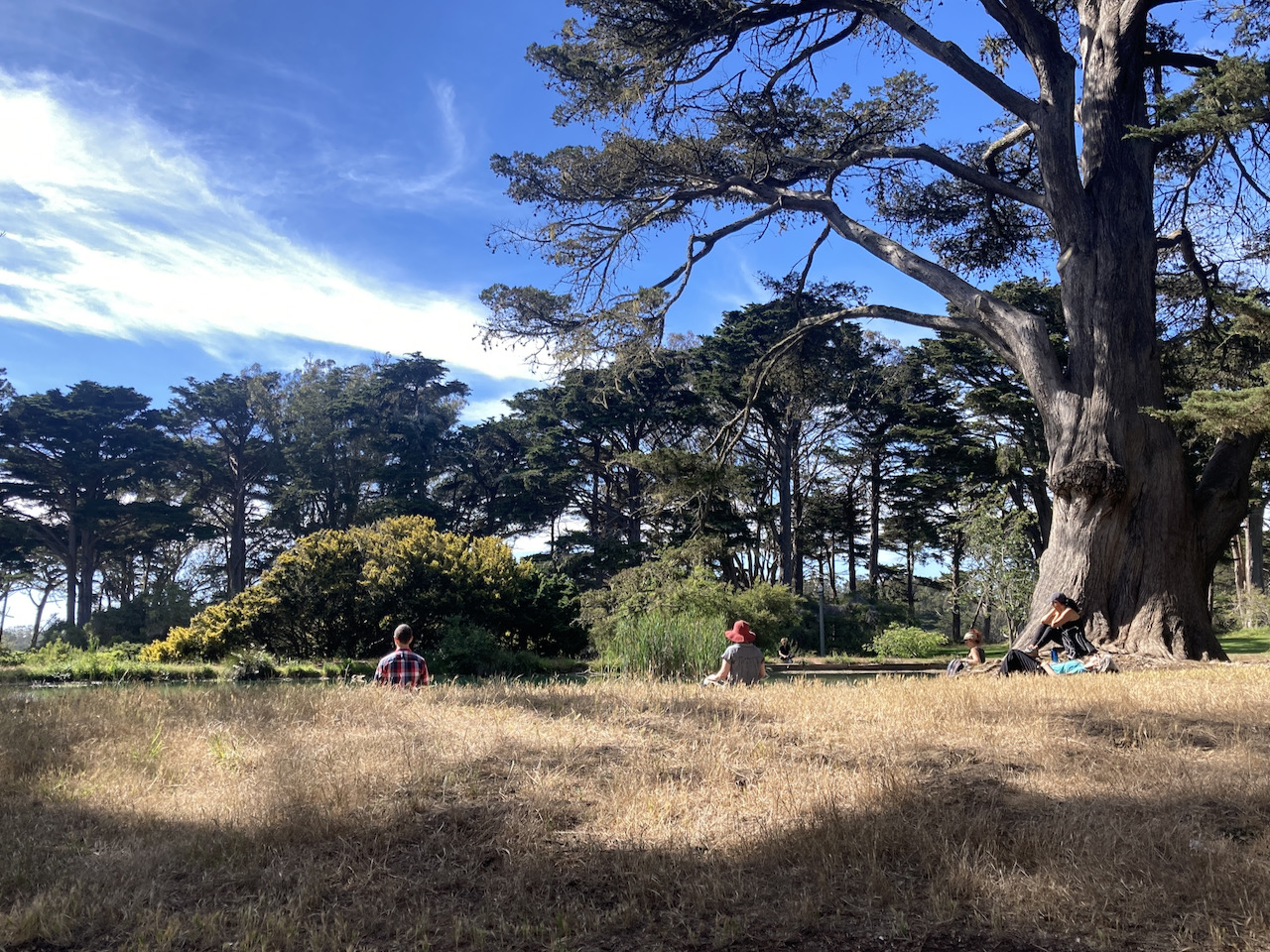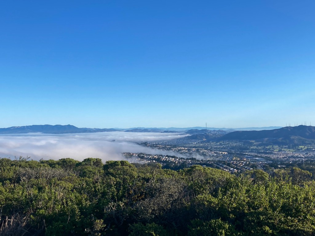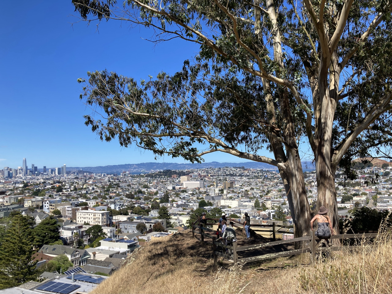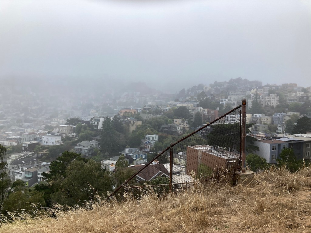 There was a breeze for the roam that made it pretty pleasant, and although we didn’t see a heron as wished, we did get to enjoy some of the lakes and many of the roses. On Saturday, having ridden through the fingers of fog creeping in from the ocean on the way to Sweeney Ridge first thing, I took a group around the much-loved Glen Canyon – Billy Goat Hill loop on another lovely afternoon. On Sunday, the annual Zen-a-thon roam had a mostly foggy time of it, as happened last year, with some detours on Corona Heights because of coyote pupping; the sun came out as we descended from the top of Buena Vista.