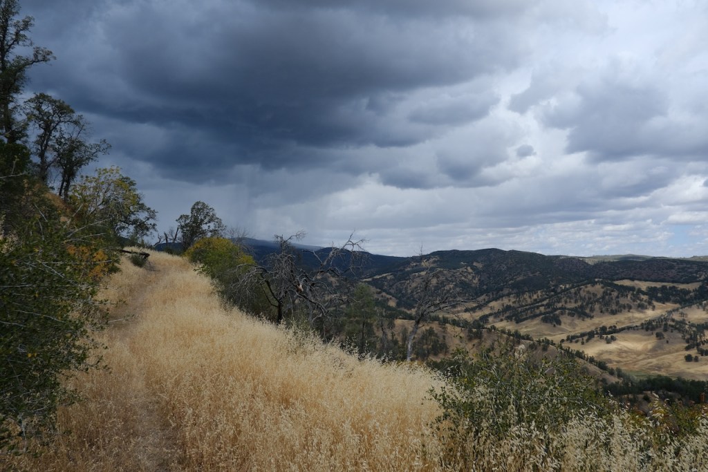 It was cooler than expected when I arrived, and on Saturday it didn’t warm up much. I took that as a good sign to take a hike in the early afternoon, and found myself half way up to the ridge hearing thunder off to the north, with ominous clouds that came our way, and then dropped rain for about half an hour while I sheltered under an oak – more concerned for my camera than for myself. Sunday was clear, and the sun started warming everything early, so it was pretty toasty by the time I headed home in the afternoon. I had managed to turn a little pink from sitting out at the end of the afternoon on Saturday, so I thought it best not to linger in the sun this time.