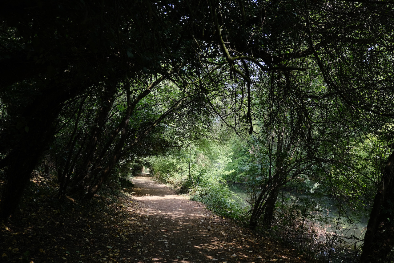 I went for a short walk in the morning, then went into town and met a friend in the park. I opted for shade whenever possible, but with my experiences at Tassajara and Wilbur, I didn’t feel like I was in unknown territory dealing with it – though I wish I could have filled my water bottle at least once more during the afternoon. The last time it was 100 degrees in San Francisco I was moving house, so this didn’t feel especially arduous. We dipped our toes into the Serpentine, which was quite a scene, and then I headed out via slow and heavily packed tubes to meet my hosts at a riverside pub.