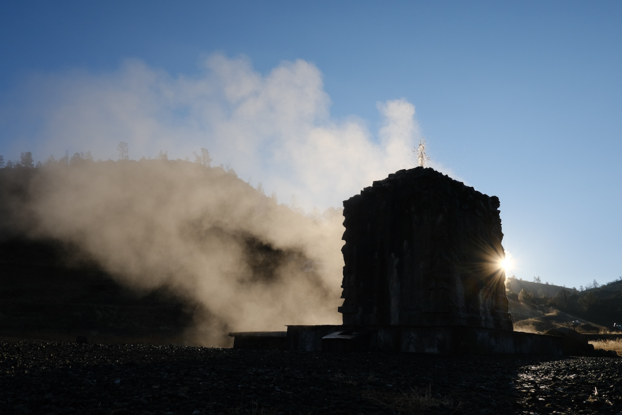 Sunday however, was completely clear, from the canopy of stars when I woke up, to the daytime blue. I went up the first section of the Manzanita trail to catch the sunrise, and then waited for it to reach the bottom of the valley, which took longer than expected; I did not get the backlit steam pictures I had hoped for, but I did catch some of the mineral colours around the hot springs. More sitting, and more relaxing meant I felt like I had had a full good time of it.