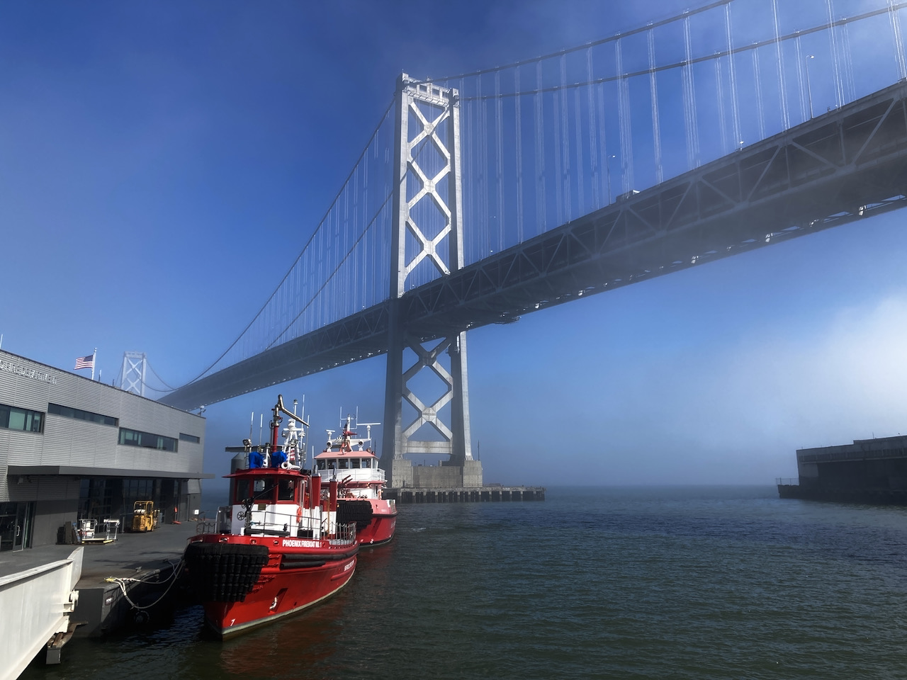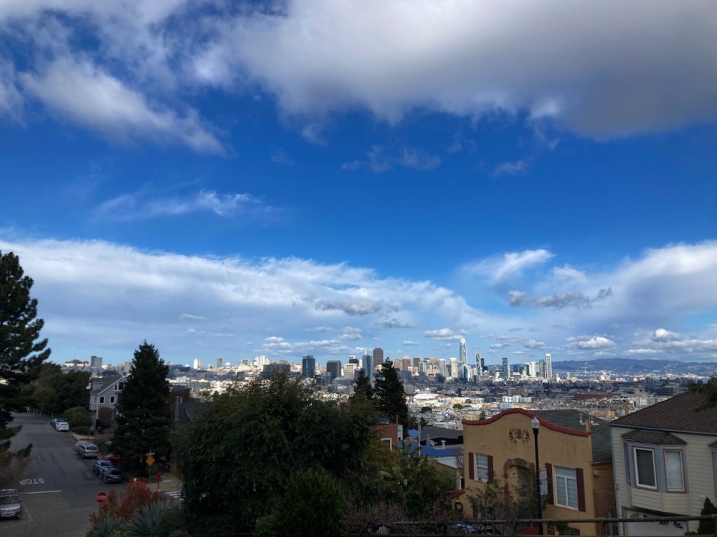 Thankfully, Mondays have been consistently sunny – there have been some warm days in the middle of all of this as well. Various people have dropped in on the sits, including three separate folk last week, which always makes us happy. This past Monday we had unusual mist around the Bay Bridge was we arrived, though it burned off while we sat. The south wind that day was replaced by a strong, biting north wind the next, which made the ferry ride a little bouncy in the morning. And we also had some rain coming out of nowhere in the afternoon.