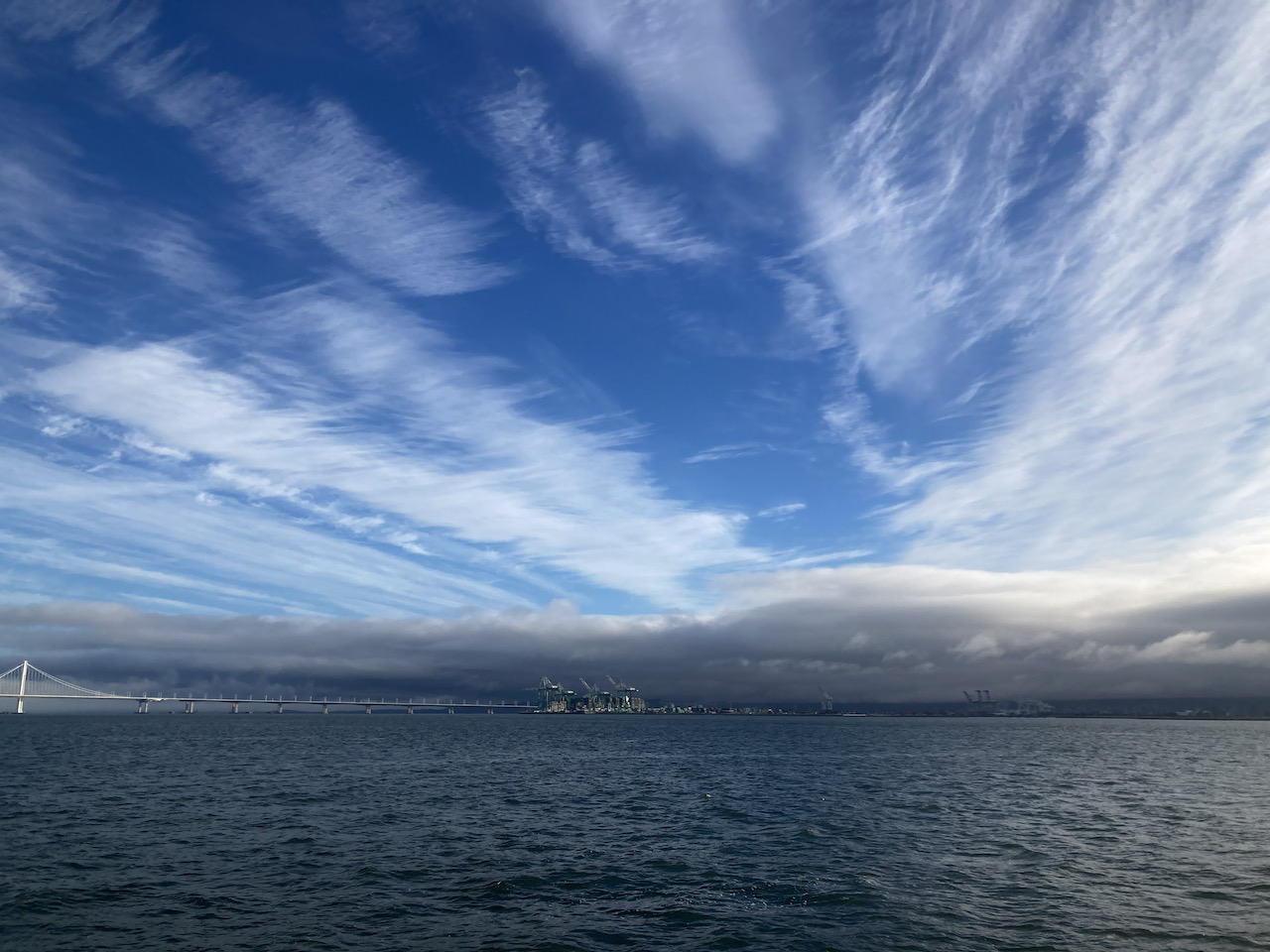 Easter weekend seemed like it was the cue for the weather to warm up. The skies were more or less free of clouds, but it was nice to be out during the day, and I was glad that, apart from my Dogen class, I had kept the weekend unscheduled, so was able to meet friends for coffee and wanders. I even wore shorts to the Monday sitting. After that, however, we had a ‘dry storm,’ with some pretty stiff winds bringing cold air – and the first wave of afternoon fog falling over the hills, as if spring immediately turned to summer.