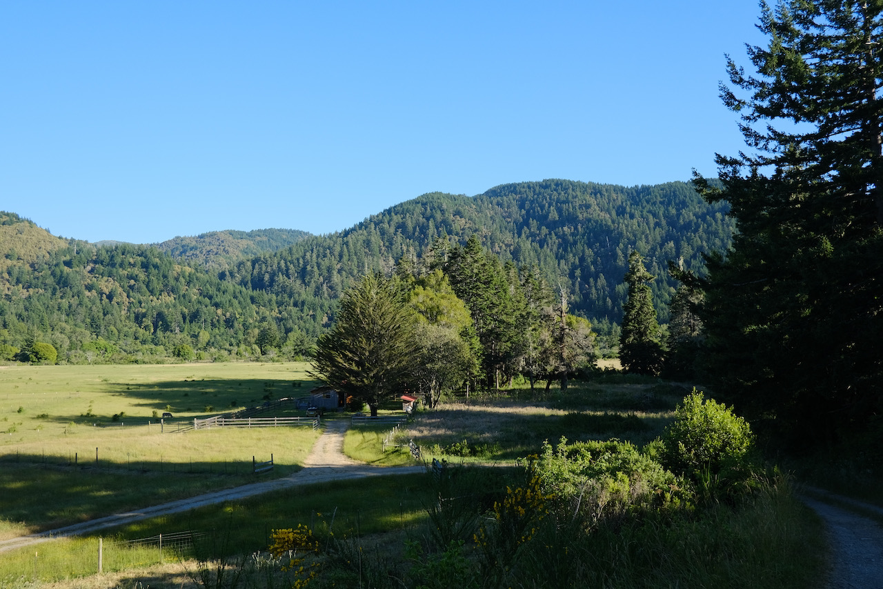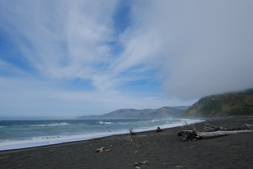 Having spent most of Sunday morning’s sitting wondering how it would be outside, I put it to the test on Monday morning. It was cloudy as it got light, and there was even a sprinkle of rain. Once we had had breakfast, cleaned up thoroughly and said our goodbyes, our car set off through the redwoods, where it was damp for a while, and then the long haul south.