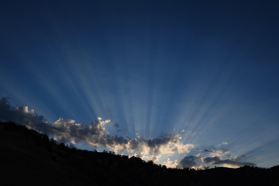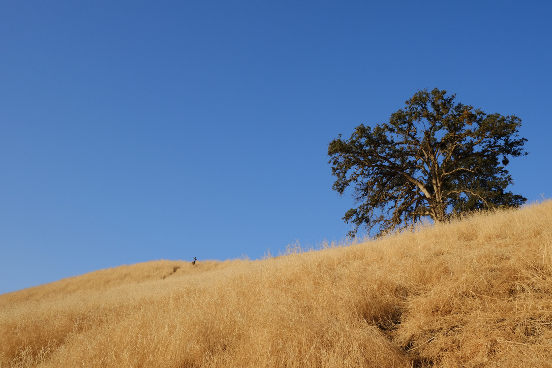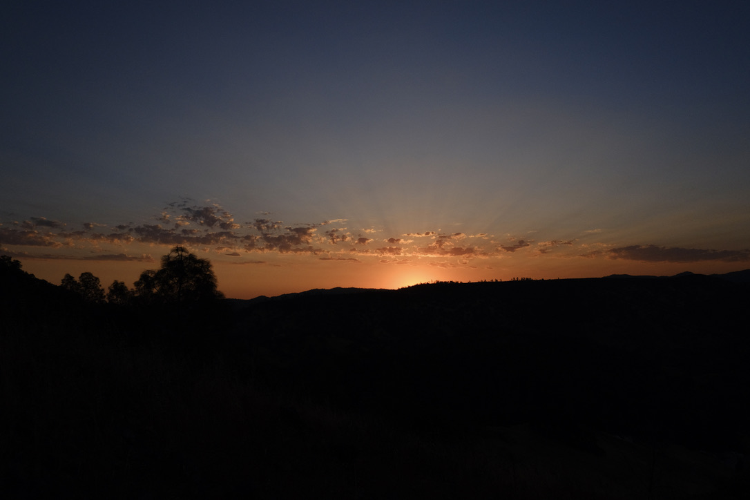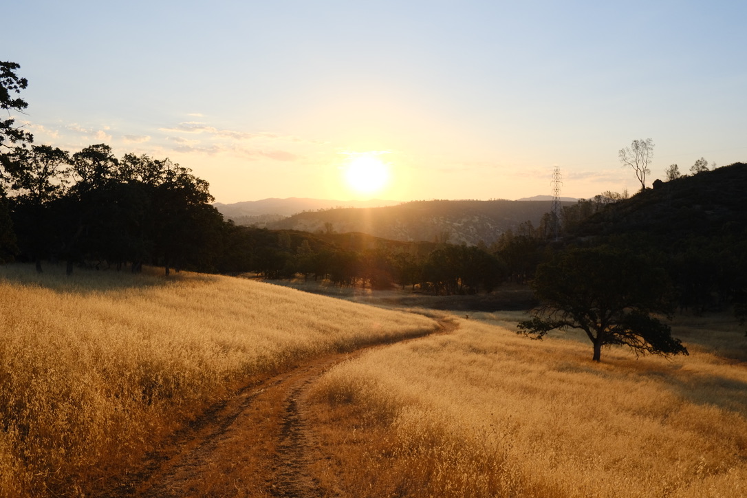 Both mornings, when it was still cool and fresh, I took hikes to catch the sunrise. On Saturday I walked down the road to the bridge that connects to the Bear Valley Road. I saw a lone boar on the hillside just before I got there – another first for me at Wilbur – which thankfully ran away when I called out to it. Then I sat and watch the rays of the sun like a cinema projector from behind the hills, until it finally came up and illuminated the oaks and the golden grass.