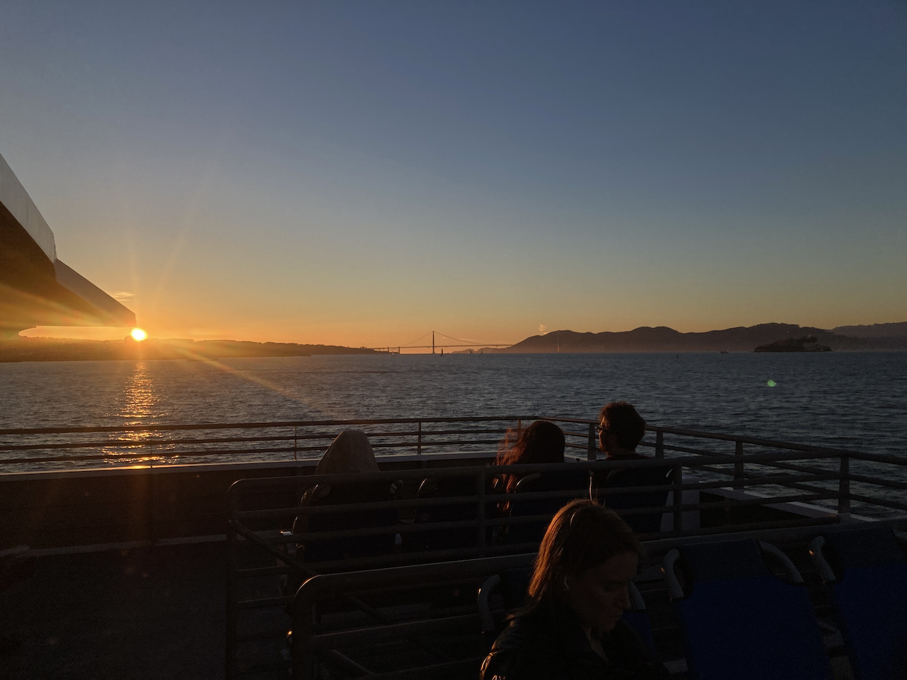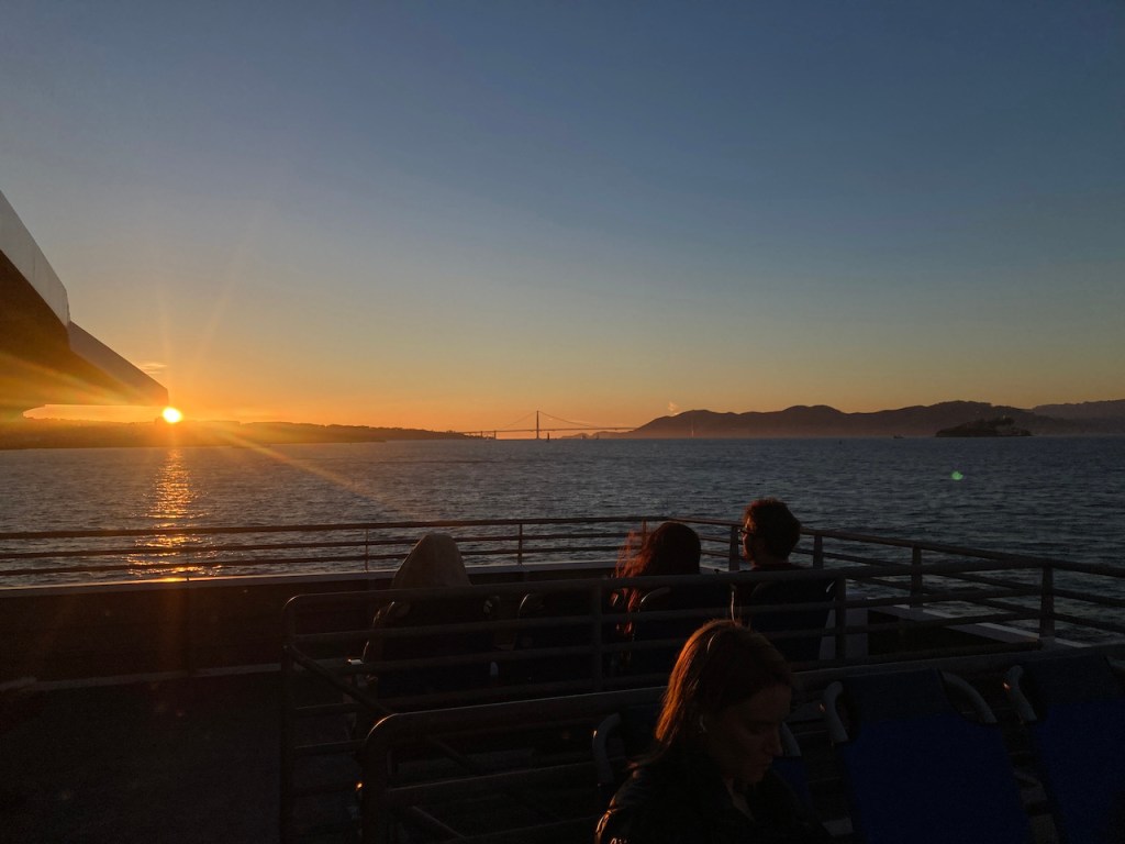 After lunch we had time to walk around the grounds, which I also remembered quite clearly, with the Trungpa stupa and the Suzuki Roshi Memorial a little further through the trees. We reflected on the visit – it was more sitting than I had done in a while, and more than at least one person had ever done in that time frame. Then we rode down the hill and waited in the warm sun for the train, and took the ferry as the sun set over the Golden Gate.