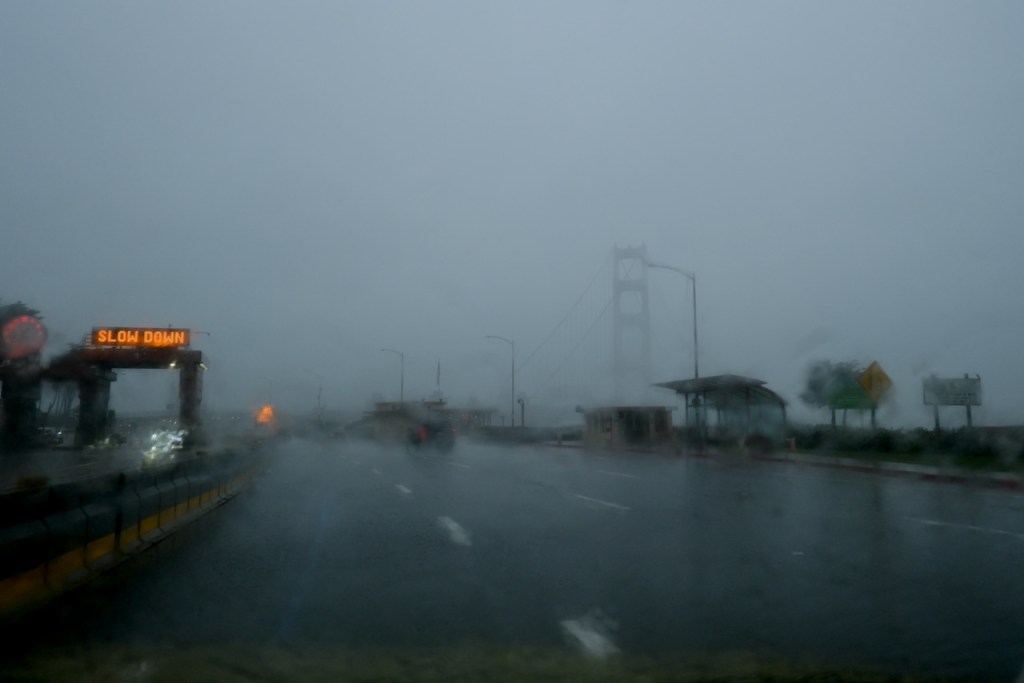 After the roam, I set off for the East Bay, as I will be looking after my girlfriend’s bulldog over Christmas, and wanted to take at least one bag over there; on Sunday we did some errands on a rainy day. I went back to the city the following morning for my Monday group, after which I headed across town to be collected by Zachary for the last of the three shuso ceremonies, at Green Gulch. We passed through a dense downpour as we crossed the bridge, though thankfully it let up enough for me to wander round the garden with my camera before the event itself.