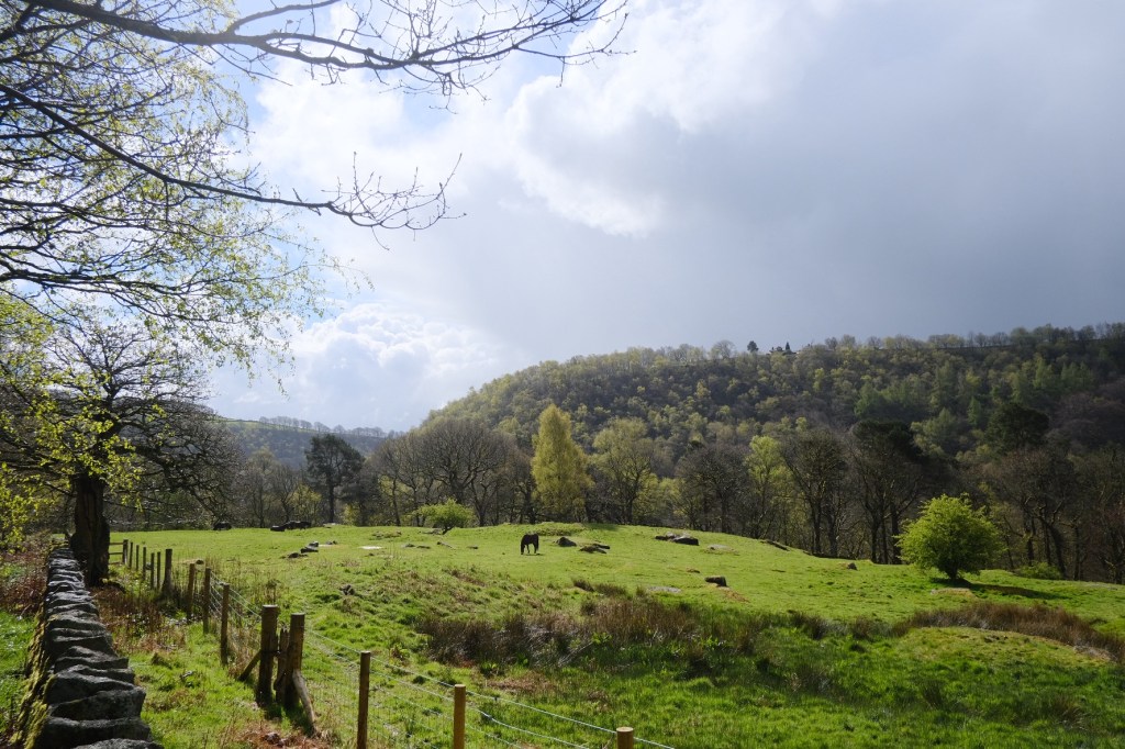 The rain greeted us last week as we headed north, and made more appearances than expected on our hike the next day: we set off for Hardcastle Crags, where sunny spells gave way to showers and even a bit of hail bouncing off the ground. At the top of the hill, the trail was totally soaked in places, and we did not pack the right kind of shoes for that; the initial plan had been to cross the river and go up to Heptonstall, but we turned around instead.