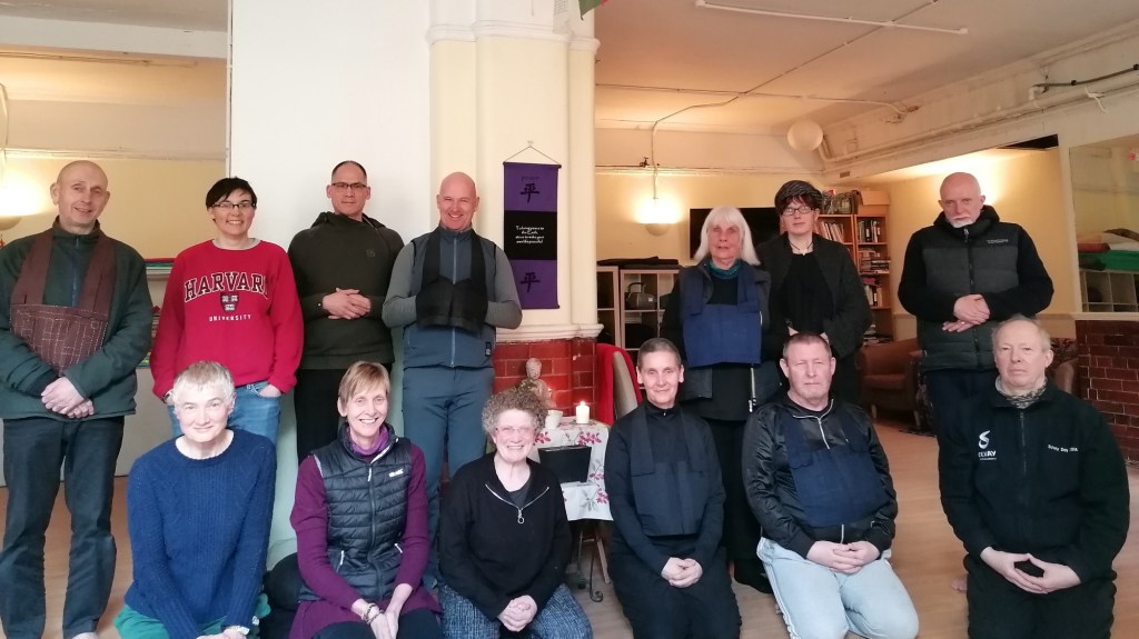 It was bright – and close to freezing – the next morning for the sitting, but nice and warm for the dozen people sitting. Unusually, I gave a talk on the Saturday as well as the one on Friday night (nominally dividing the Six Perfections into two halves), and did a couple of practice discussions as well.