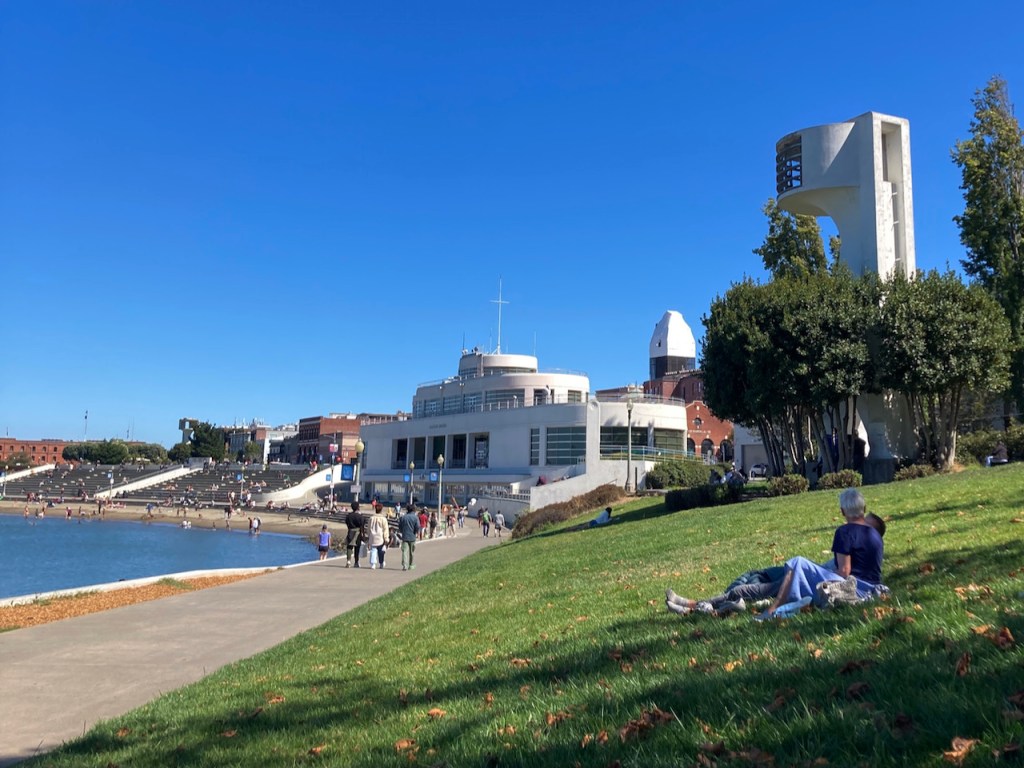 For the long weekend, I had roams and a wedding on the schedule – all lovely, especially getting to officiate at the Pulgas Water Temple, which I had never visited before. The harpist who was a part of the ceremony said it was her favourite venue. Close up, I could see how meaningful and heartfelt the young couple’s vows were. Afterwards Ruth and I (and Georgie,in her buggy) went over to Burlingame for a swanky dinner to celebrate a year of knowing each other – a day that also occasioned hearfelt expressions of love.