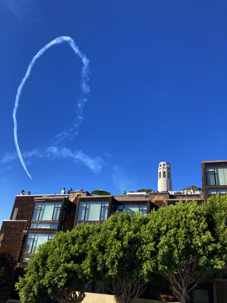 And the rest of the afternoon we had the Blue Angels. We had actually walked a few blocks to watch them on Saturday, but that show was curtailed by the fog; on Sunday the skies were clear, so we got deafened on and off for a few hours.
