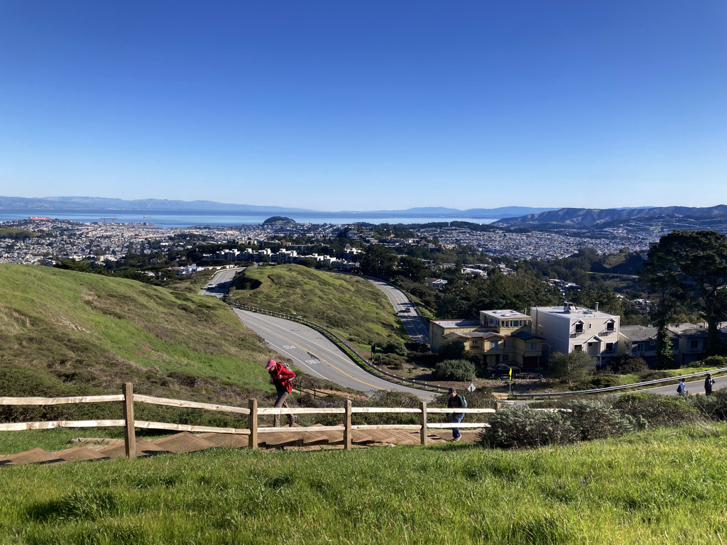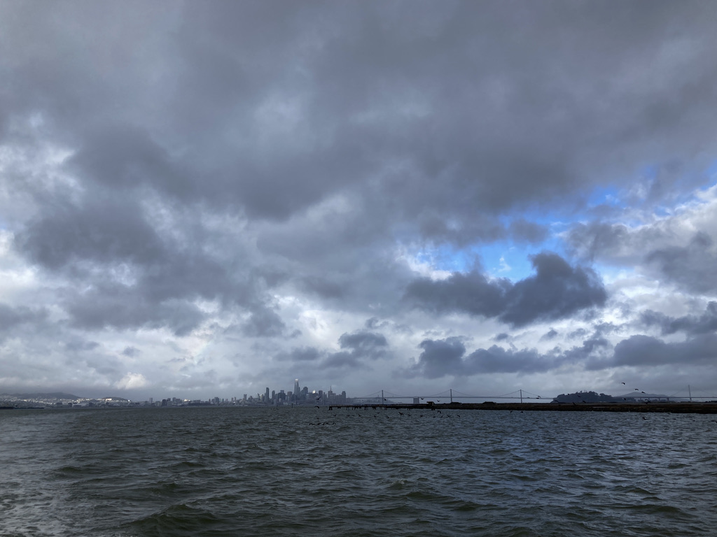 After landing in an atmospheric river last week, we enjoyed a sunny and clear weekend. It was cold around the edges, but on our Sunday roam, we could enjoy the brightness and long views from the top of Twin Peaks. And then the heavy rain was due back for Thursday. Since I still had all my rain gear out, I figured I would manage the commute somehow. In the end, I got out of the house in a break in the rain, and barely got wet on both commutes, which was a relief.