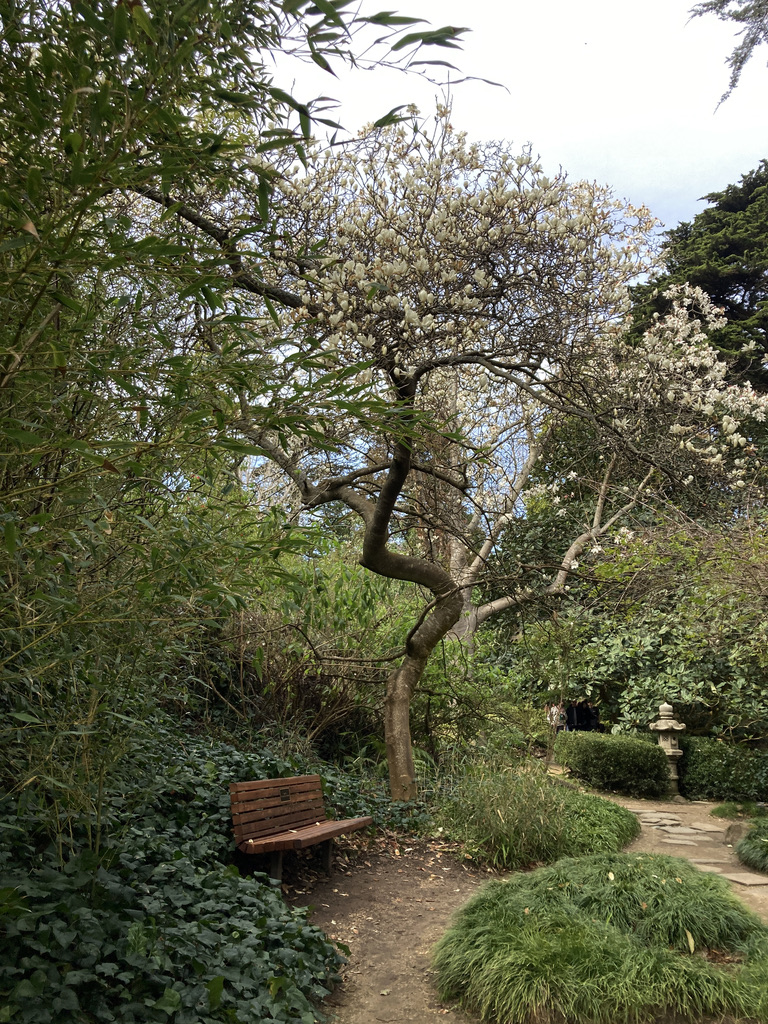 The temperatures have been creeping upwards, especially in the morning, which makes the difference between wearing a hat and gloves on the bike or not. The afternoons, even with a little bit of drizzle, and hazy clouds, feel just a touch warmer. It was pleasant to be out in the Botanical Garden with a group of fourteen (many of the people who had signed up on Meetup did not come, as is pretty typical). I wouldn’t say that the magnolias were at their best – maybe they look better against a blue sky, but everyone enjoyed the tour. I expect slightly balmier weather for the upcoming roams, though I don’t think I am quite ready to transition to shorts yet.