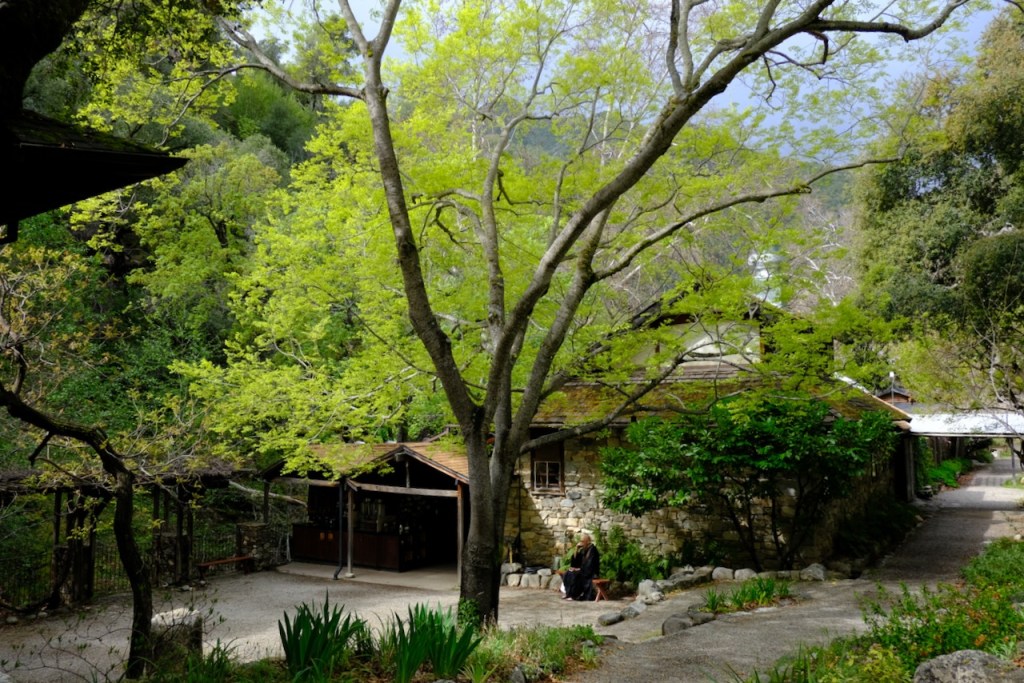 The highlight of the week was undoubtedly going down to Tassajara on Monday for the Shuso Ceremony. After being caught out by the rain when we last did this in December, with a similar forecast for the day, I brought my umbrella with me this time – and of course it kept the rain at bay. We did drive through several bands of rain, and wet roads, but once in the valley it was a fine spring day, with intermittent sun lighting up the lush profusion of greenery, which was accented by a number of blossoming redbud trees.