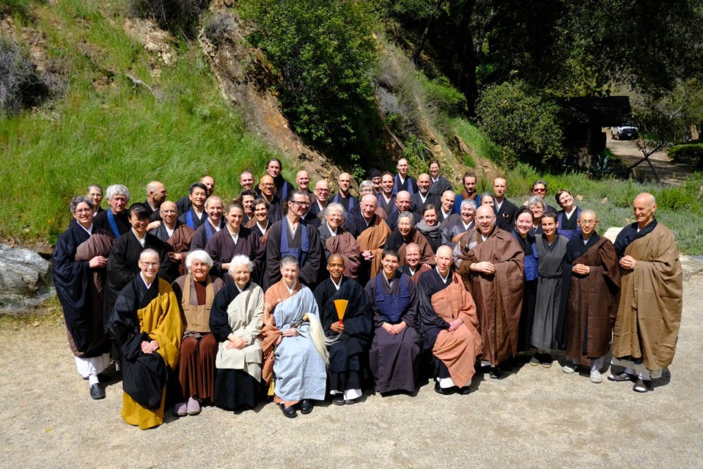 Afterwards, we noted that the former shusos had not given her a hard tiime about anything, which is always due to a sense that the shuso has answered earlier questions clearly and authentically. As usual, I got to boss everyone around for the photos, and then hung around chatting while we waited for lunch, while regretting that I had decided not to make a dash for the bathhouse.