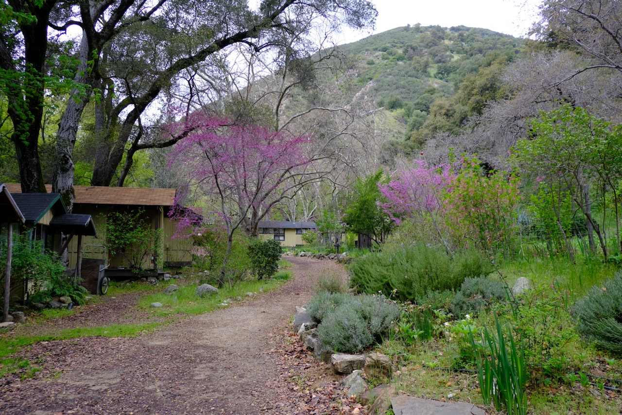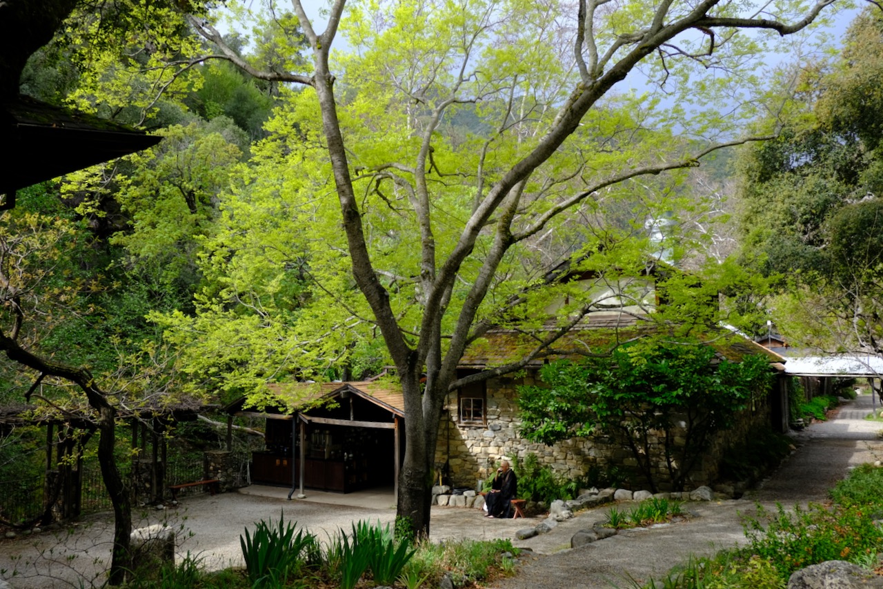 The highlight of the week was undoubtedly going down to Tassajara on Monday for the Shuso Ceremony. After being caught out by the rain when we last did this in December, with a similar forecast for the day, I brought my umbrella with me this time – and of course it kept the rain at bay. We did drive through several bands of rain, and wet roads, but once in the valley it was a fine spring day, with intermittent sun lighting up the lush profusion of greenery, which was accented by a number of blossoming redbud trees.