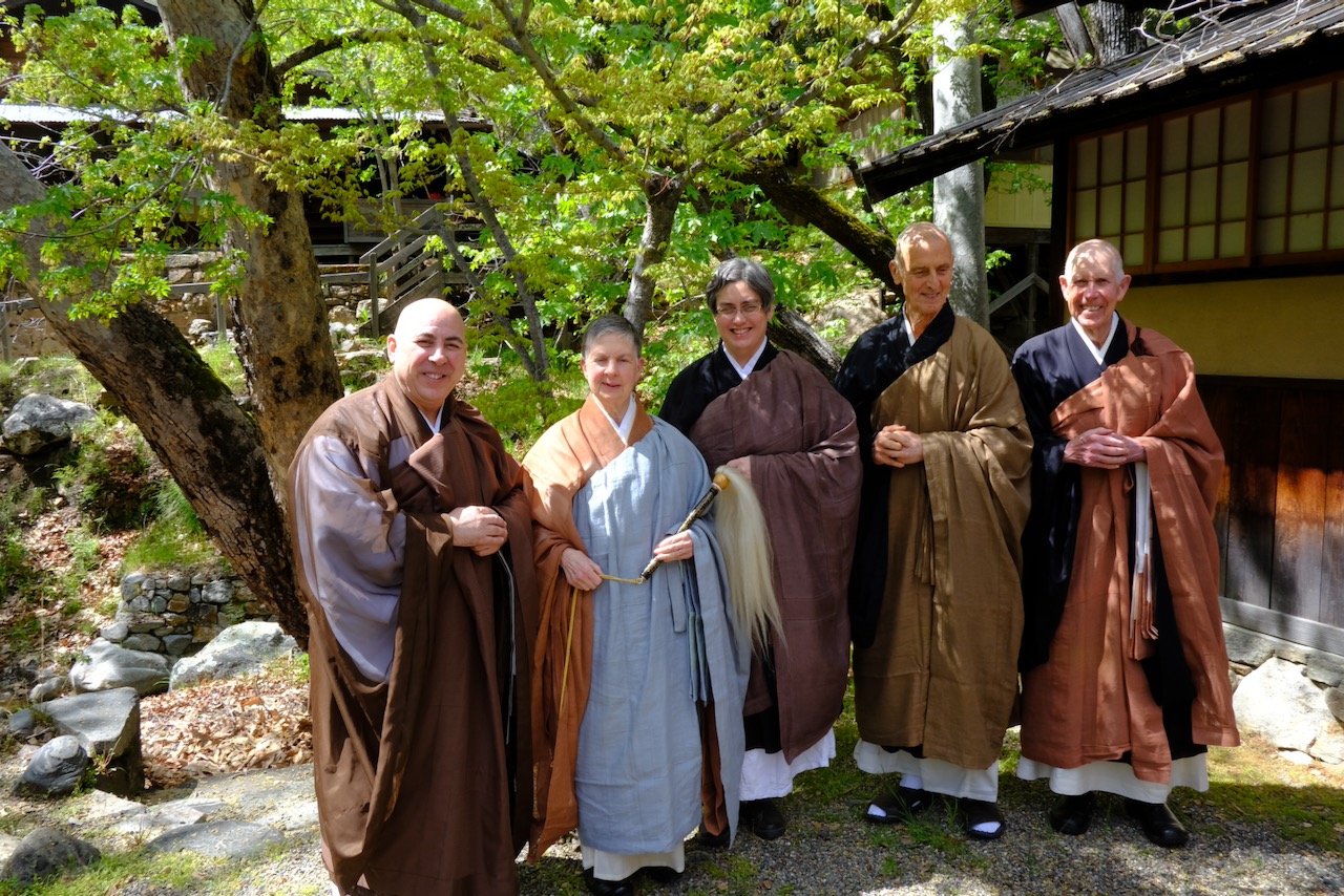 Afterwards, we noted that the former shusos had not given her a hard tiime about anything, which is always due to a sense that the shuso has answered earlier questions clearly and authentically. As usual, I got to boss everyone around for the photos, and then hung around chatting while we waited for lunch, while regretting that I had decided not to make a dash for the bathhouse.