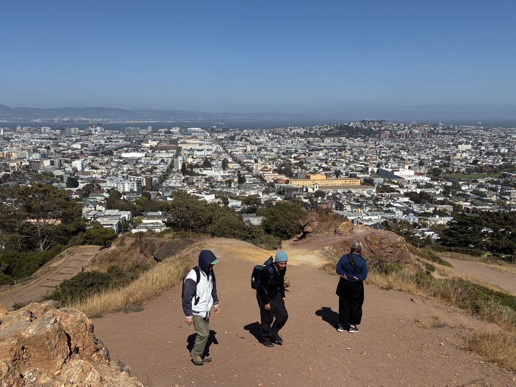 We had a pretty good spell of sunny weather last week, but it was not warm enough to still the wind. It was nice to be outside and soaking in some heat on the roams and various bike rides. Friday’s roam was an opportunity to take some of the Hebden Bridge group, who have been over for a month, mostly at Tassajara, around some of the local highlights – it was windy on Corona Heights, but everyone enjoyed the clear views. We caught up over dinner afterwards as well, making plans for my next potential visit over there, which, we realised, would be the weekend exactly one year hence (since I have the teachers’ gathering on the East Coast at the beginning of June 2026).