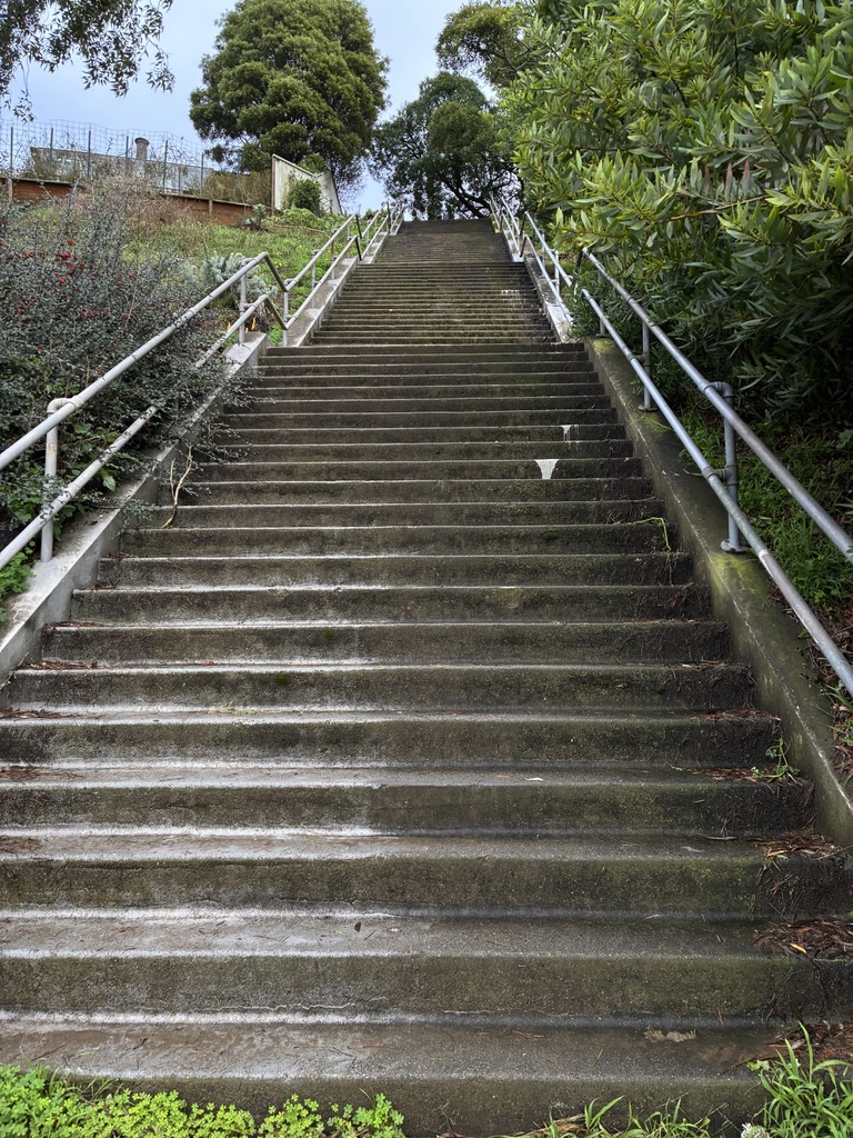 After getting through Saturday’s roam, albeit tired at the end of it (I think someone clocked it at 1900′ of elevation), Friday’s jaunt up Mount Sutro – even taking the steepest trails – felt like a breeze. With all the trees being taken down, which meant many of the trails were closed, there are more views than ever, and we got to sit in the late afternoon sun at the summit, which was nicer than I remember.