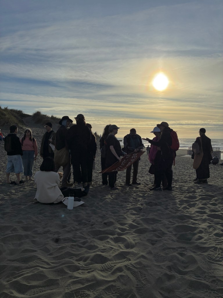 Two things surprised me: the first was that the silence prevailed over the whole walk. There were one or two conversations to be heard, but otherwise it was a two-hundred-odd group of people walking quietly. The second was that some people we in a big hurry to get to the ocean. I tried reining in the front runners a few times, and in the end, the people carrying the banner were often going a little quicker than I would have prefered (and probably a few others as well).