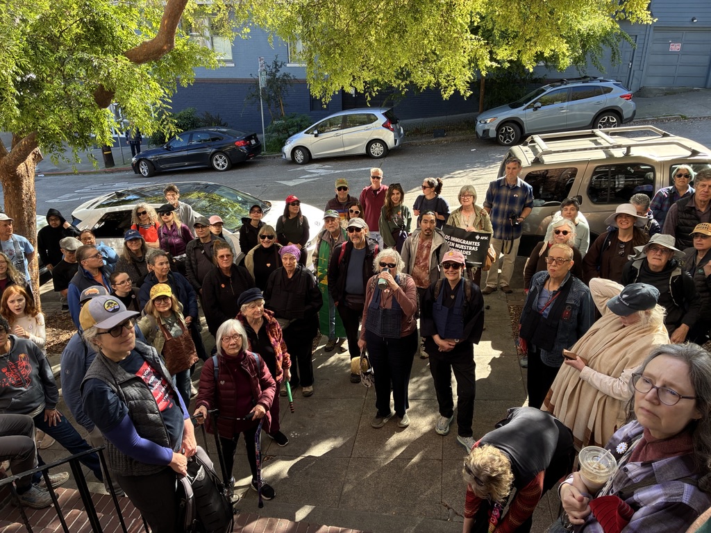 There were plenty of people milling about in front of 300 Page St when I got there – I had been working on the timings I had been given in the initial briefing document, and it looked like the plan was to get underway sooner than I had expected. Nannette, who had done the organising, addressed the attendees, and then I said a few words. We had discussed how silent to be, and my suggestion was that we start up the hill in silence, and then saw how we felt.