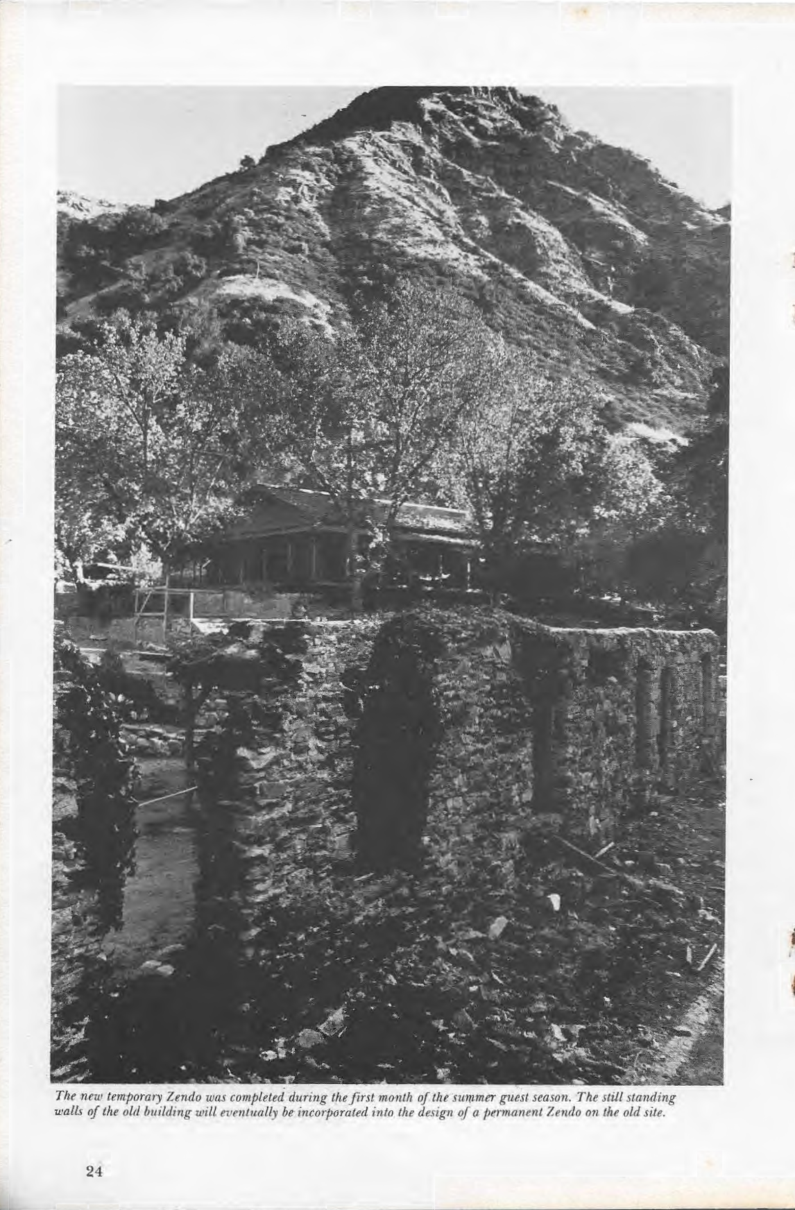 ‘At the end of the Spring 1978 practice period there was a disastrous fire at Tassajara that burned down the Zendo, library, food storage area, and office. After successfully keeping the huge August forest fire out of Tassajara, to lose the oldest, most central, and important building at Tassajara could have been very discouraging; but everyone met it with acceptance and hard work.