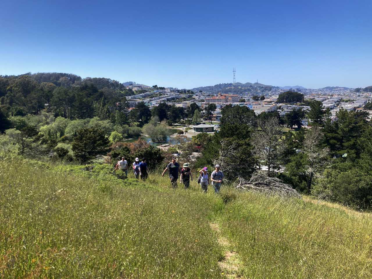 There are so many little corners of San Francisco that lend themselves to the activity, surrounded by beauty, views, and sometimes quiet. We have visited forests, hills and canyons, creeks and beaches, staircases and alleys, lakes and hidden parks; we have listened to birds and waves, watched butterflies, bees and coyotes, smelled flowers and ocean spray. We have looked over all sides of San Francisco and to the mountains beyond.